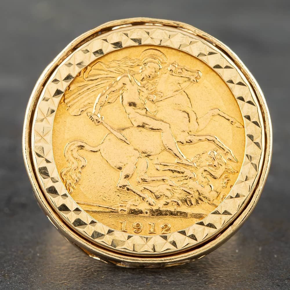 Second Hand 9ct Yellow Gold 1912 Half Sovereign Coin Ring 41201011BND Second Hand 9ct Yellow Gold 1912 Half Sovereign Coin Ring 41201011BND