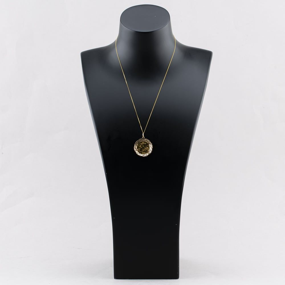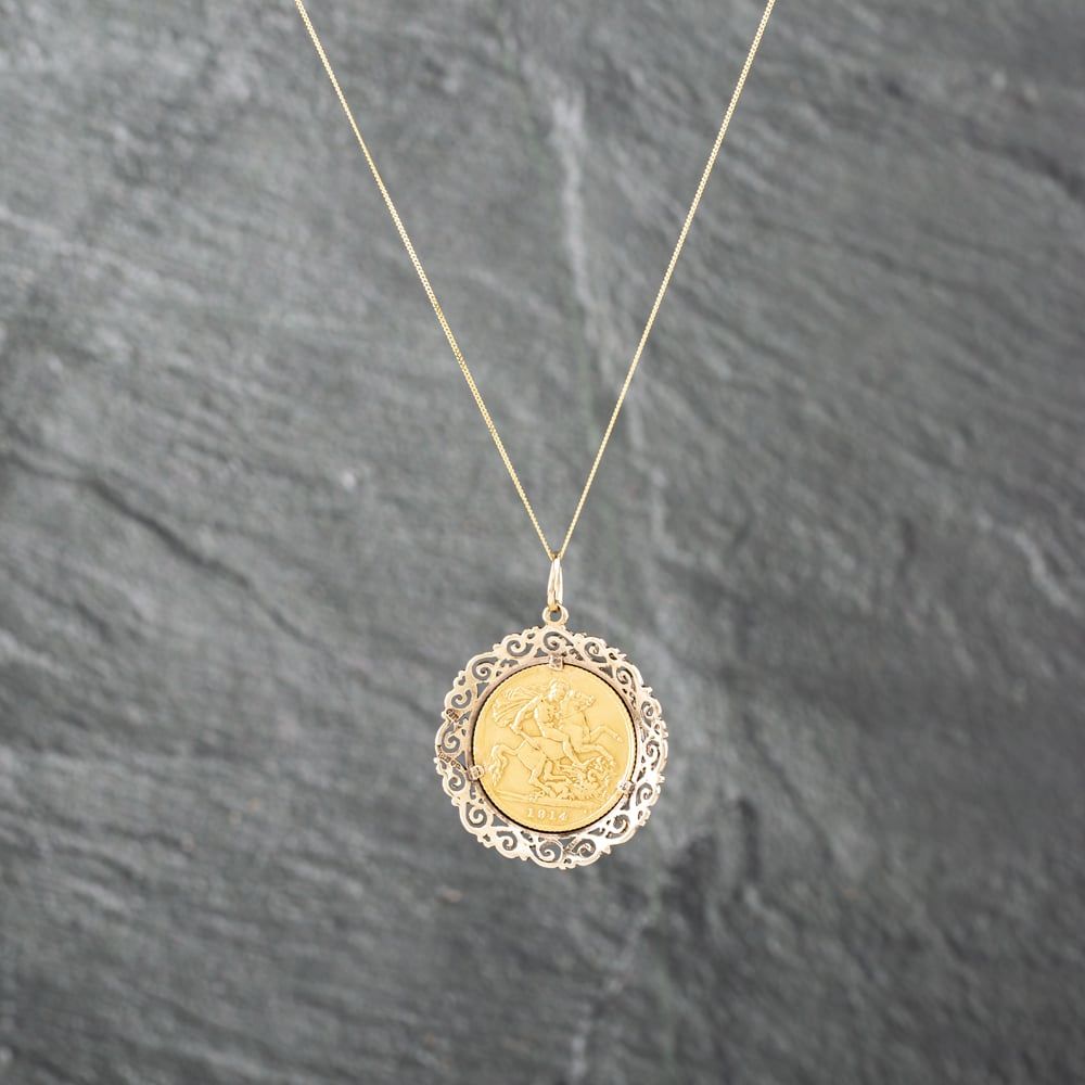 9ct Yellow Gold 1914 George V Half Sovereign Coin Keeper Pendant & 18 Inch Curb Chain
