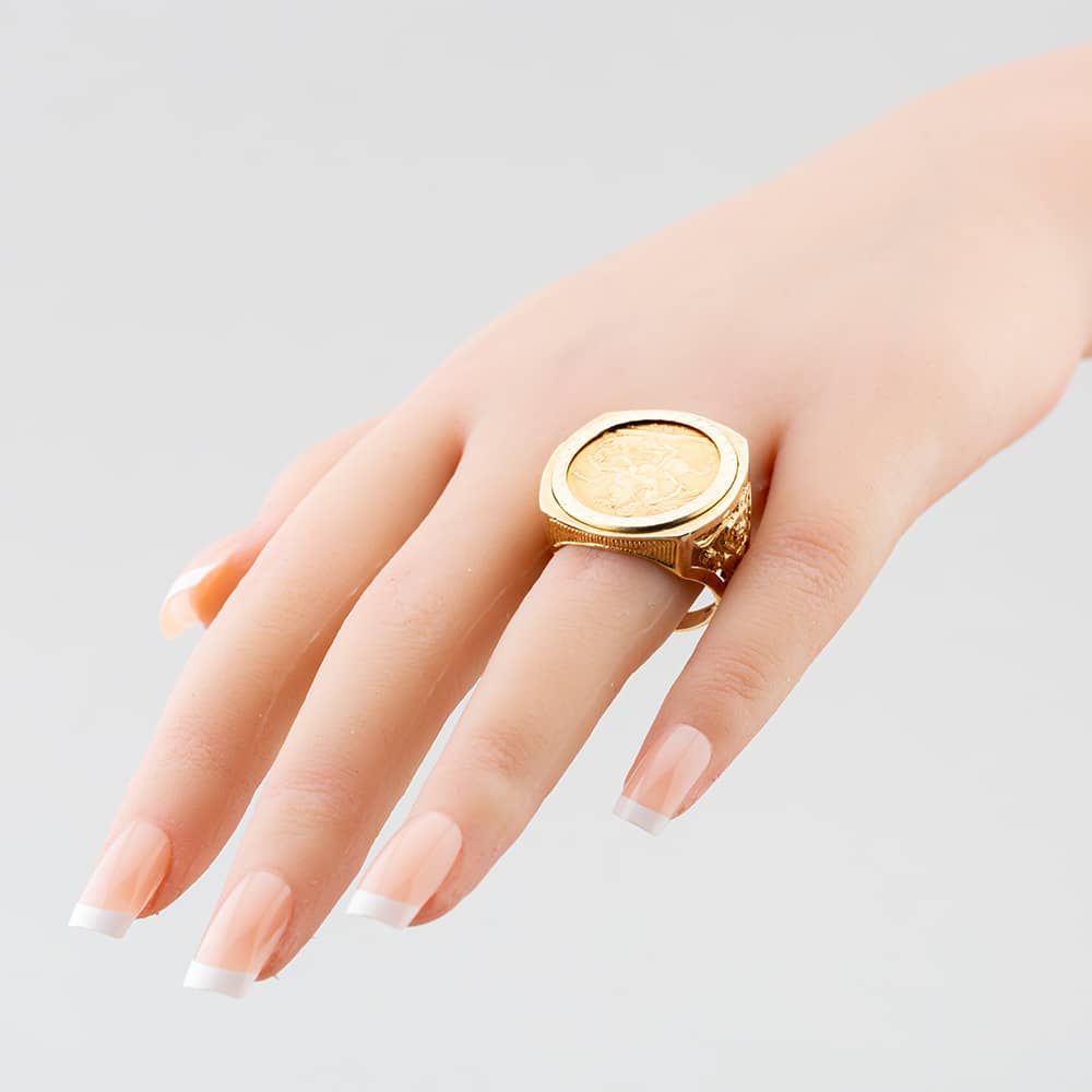 9ct Yellow Gold George & Dragon Coin Ring