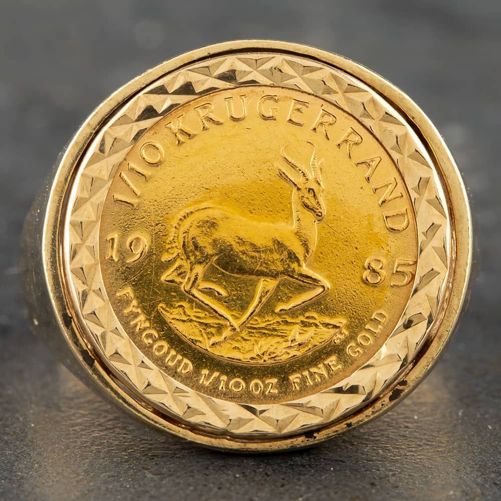 <a href="https://www.thbaker.co.uk/stores/"><b>Click here to find your <font color="6d1a42">nearest store</font></b></a>Second Handhttps://www.thbaker.co.uk/media/catalog/product/4/7/47-01-1006_1.jpgadd-to-cartcondition:Yesdisc_no_stock:NoYesNoSecond Hand41201012BNDMensT H Baker Packaging12 Month WarrantyNoRing7.80gRCoin9ct Yellow GoldNo StoneNo Stone41201012BNDSecond Hand 9ct Yellow Gold 1985 1/10th Krugerrand Coin Ring41-20-1012-BND2023-08-23 00:00:00[{"path":"\/Jewellery\/Rings","url":"\/rings\/"},{"path":"\/Jewellery\/Rings\/Mens Rings","url":"\/mens-rings\/"},{"path":"\/Jewellery\/Gold Jewellery\/Yellow Gold Rings","url":"\/yellow-gold-rings\/"}]2023-11-21