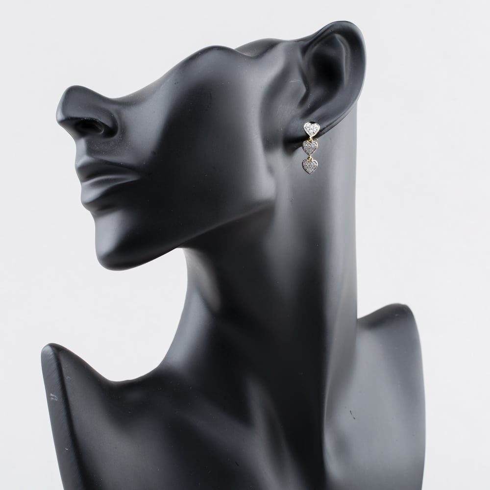 Second Hand 9ct Yellow Gold 19mm Diamond Triple Heart Dropper Earrings 41173360