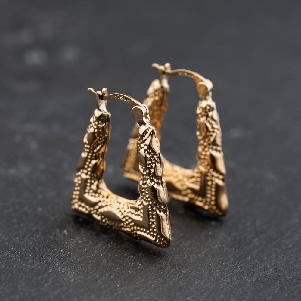 9ct Yellow Gold 20.5mm Engraved Oblong Hoop Earrings