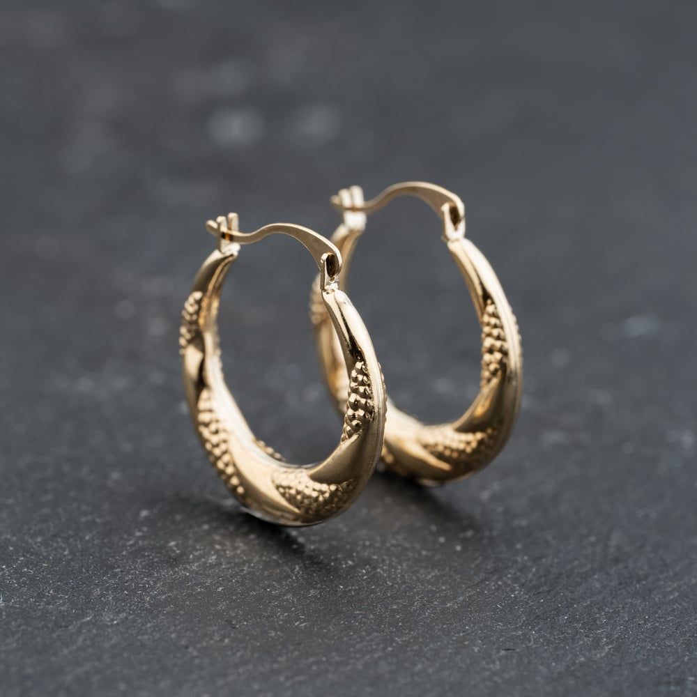9ct Yellow Gold 20mm Engraved Creole Earrings