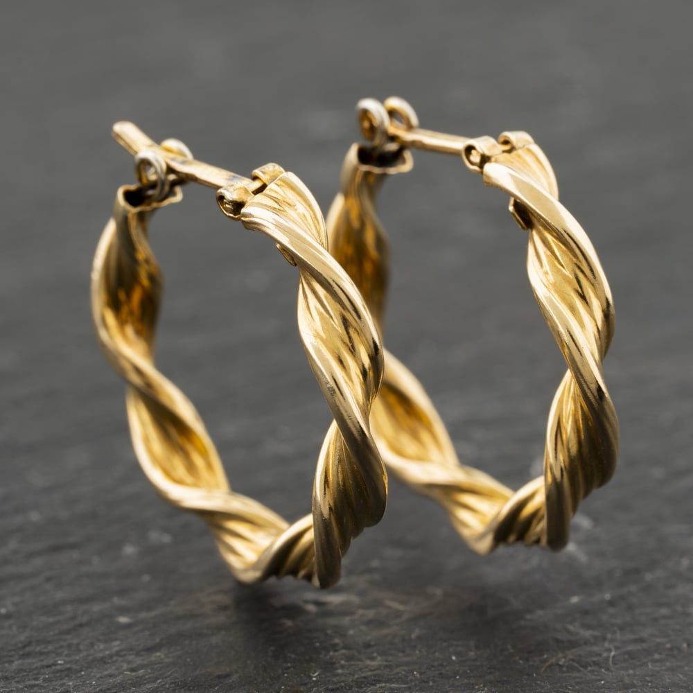 <a href="https://www.thbaker.co.uk/stores/"><b>Click here to find your <font color="6d1a42">nearest store</font></b></a>Second Handhttps://www.thbaker.co.uk/media/catalog/product/4/1/41-17-3959_model_1.jpgadd-to-cartcondition:Yesdisc_no_stock:NoYesNo41173959Second Hand41173959LadiesT H Baker Packaging12 Month WarrantyNoEarrings2.2gHoops9ct Yellow GoldGoldNo StoneNo Stone{"name":"Klarna","text":"3 payments of \u00a375","imageUrl":"https:\/\/www.thbaker.co.uk\/media\/nosto\/klarna.png"}Second Hand 9ct Yellow Gold 20mm Twist Hoop Earrings41-17-39592025-12-16 00:00:00[{"path":"\/Jewellery","url":"\/jewellery\/"},{"path":"\/Seasonal\/Christmas Collection","url":"\/christmas-collection\/"},{"path":"\/Seasonal\/Christmas Collection\/Gifts For Her","url":"\/christmas-gifts-for-her\/"},{"path":"\/Jewellery\/Earrings","url":"\/earrings\/"},{"path":"\/Jewellery\/Earrings\/Gold Earrings","url":"\/gold-earrings\/"},{"path":"\/Second Hand Collection","url":"\/second-hand\/"},{"path":"\/Second Hand Collection\/Second Hand Jewellery","url":"\/second-hand-jewellery\/"},{"path":"\/Second Hand Collection\/Second Hand Earrings","url":"\/second-hand-earrings\/"},{"path":"\/Jewellery\/Gold Jewellery","url":"\/gold-jewellery\/"},{"path":"\/Second Hand Collection\/Second Hand Jewellery\/Second Hand Yellow Gold","url":"\/second-hand-yellow-gold-jewellery\/"},{"path":"\/Second Hand Collection\/Second Hand Ladies","url":"\/second-hand-ladies-collection\/"},{"path":"\/Jewellery\/Earrings\/Gold Earrings\/Gold Hoop Earrings","url":"\/gold-hoop-earrings\/"},{"path":"\/Jewellery\/Earrings\/Hoop Earrings","url":"\/hoop-earrings\/"},{"path":"\/Jewellery\/Ladies Jewellery","url":"\/ladies-jewellery\/"},{"path":"\/Second Hand Collection\/Second Hand Earrings\/Second Hand Hoop Earrings","url":"\/second-hand-hoop-earrings\/"},{"path":"\/Jewellery\/Gold Jewellery\/Yellow Gold Earrings","url":"\/yellow-gold-earrings\/"},{"path":"\/Jewellery\/Gold Jewellery\/Yellow Gold Earrings\/Yellow Gold Hoop Earrings","url":"\/yellow-gold-hoop-earrings\/"},{"path":"\/Second Hand Collection\/Second Hand Gold","url":"\/second-hand-gold\/"},{"path":"\/Second Hand Collection\/Second Hand Jewellery\/Second Hand 9ct","url":"\/second-hand-9ct-jewellery\/"},{"path":"\/Second Hand Collection\/Second Hand Earrings\/Second Hand Yellow Gold Earrings","url":"\/second-hand-yellow-gold-earrings\/"},{"path":"\/Second Hand Collection\/Second Hand Earrings\/Second Hand Ladies Earrings","url":"\/second-hand-ladies-earrings\/"},{"path":"\/Seasonal\/Christmas Collection\/Pre Loved Christmas Gifts","url":"\/pre-loved-christmas-gifts\/"}]2026-03-16