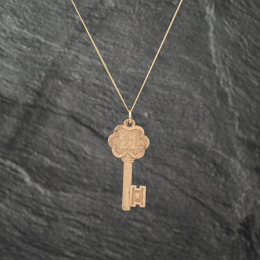 Second Hand 9ct Yellow Gold 21 Key Pendant & 18 Inch Curb Chain 41142978 Second Hand 9ct Yellow Gold 21 Key Pendant & 18 Inch Curb Chain 41142978