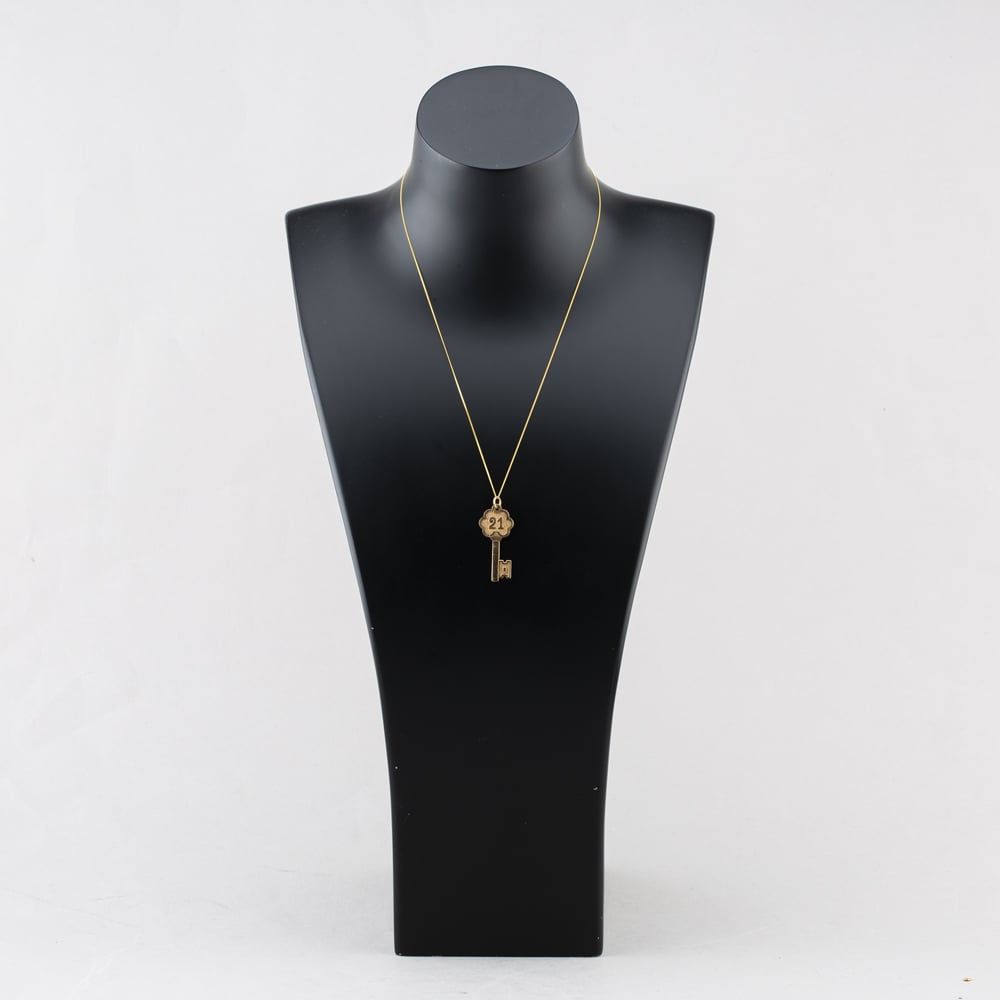 Second Hand 9ct Yellow Gold 21 Key Pendant & 18 Inch Curb Chain 41142978