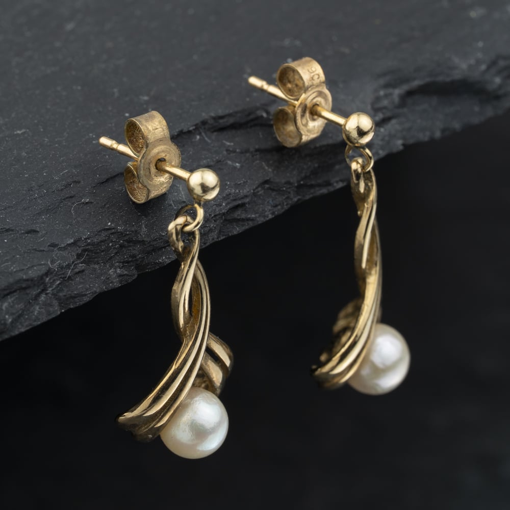 Second Hand 9ct Yellow Gold 22mm Pearl Pear Shaped Infinity Dropper Earrings 41173622 Second Hand 9ct Yellow Gold 22mm Pearl Pear Shaped Infinity Dropper Earrings 41173622