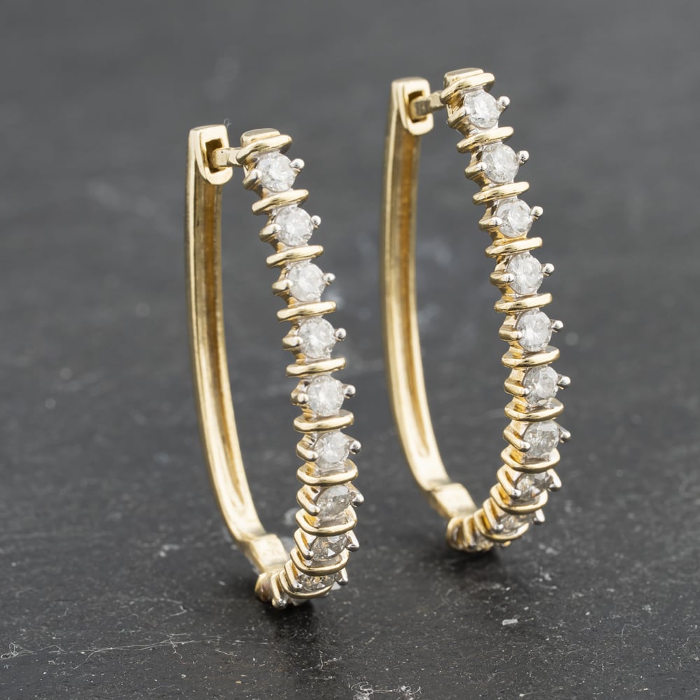 9ct Yellow Gold 25mm Diamond Ten Stone Hoop Earrings