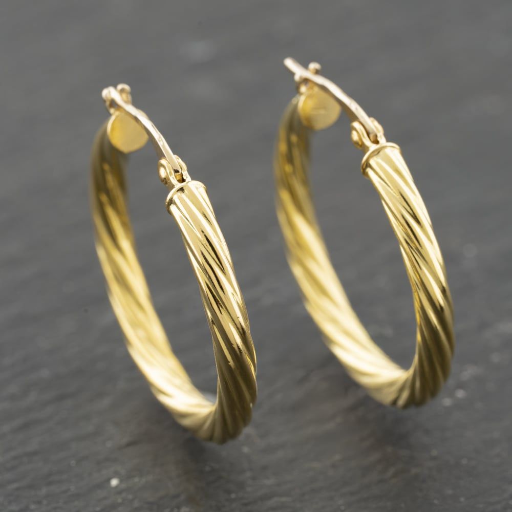 <a href="https://www.thbaker.co.uk/stores/"><b>Click here to find your <font color="6d1a42">nearest store</font></b></a>Second Handhttps://www.thbaker.co.uk/media/catalog/product/4/1/41-17-3982_model_1.jpgadd-to-cartcondition:Yesdisc_no_stock:NoYesNo41173982Second Hand41173982LadiesT H Baker Packaging12 Month WarrantyNoEarrings2.2gHoops9ct Yellow GoldGoldNo StoneNo Stone{"name":"Klarna","text":"3 payments of \u00a375","imageUrl":"https:\/\/www.thbaker.co.uk\/media\/nosto\/klarna.png"}Second Hand 9ct Yellow Gold 27mm Twist Hoop Earrings41-17-39822025-12-19 00:00:00[{"path":"\/Jewellery","url":"\/jewellery\/"},{"path":"\/Seasonal\/Christmas Collection","url":"\/christmas-collection\/"},{"path":"\/Seasonal\/Christmas Collection\/Gifts For Her","url":"\/christmas-gifts-for-her\/"},{"path":"\/Jewellery\/Earrings","url":"\/earrings\/"},{"path":"\/Jewellery\/Earrings\/Gold Earrings","url":"\/gold-earrings\/"},{"path":"\/Second Hand Collection","url":"\/second-hand\/"},{"path":"\/Second Hand Collection\/Second Hand Jewellery","url":"\/second-hand-jewellery\/"},{"path":"\/Second Hand Collection\/Second Hand Earrings","url":"\/second-hand-earrings\/"},{"path":"\/Jewellery\/Gold Jewellery","url":"\/gold-jewellery\/"},{"path":"\/Second Hand Collection\/Second Hand Jewellery\/Second Hand Yellow Gold","url":"\/second-hand-yellow-gold-jewellery\/"},{"path":"\/Second Hand Collection\/Second Hand Ladies","url":"\/second-hand-ladies-collection\/"},{"path":"\/Jewellery\/Earrings\/Gold Earrings\/Gold Hoop Earrings","url":"\/gold-hoop-earrings\/"},{"path":"\/Jewellery\/Earrings\/Hoop Earrings","url":"\/hoop-earrings\/"},{"path":"\/Jewellery\/Ladies Jewellery","url":"\/ladies-jewellery\/"},{"path":"\/Second Hand Collection\/Second Hand Earrings\/Second Hand Hoop Earrings","url":"\/second-hand-hoop-earrings\/"},{"path":"\/Jewellery\/Gold Jewellery\/Yellow Gold Earrings","url":"\/yellow-gold-earrings\/"},{"path":"\/Jewellery\/Gold Jewellery\/Yellow Gold Earrings\/Yellow Gold Hoop Earrings","url":"\/yellow-gold-hoop-earrings\/"},{"path":"\/Second Hand Collection\/Second Hand Gold","url":"\/second-hand-gold\/"},{"path":"\/Second Hand Collection\/Second Hand Jewellery\/Second Hand 9ct","url":"\/second-hand-9ct-jewellery\/"},{"path":"\/Second Hand Collection\/Second Hand Latest Additions","url":"\/second-hand-latest-additions\/"},{"path":"\/Second Hand Collection\/Second Hand Earrings\/Second Hand Yellow Gold Earrings","url":"\/second-hand-yellow-gold-earrings\/"},{"path":"\/Second Hand Collection\/Second Hand Earrings\/Second Hand Ladies Earrings","url":"\/second-hand-ladies-earrings\/"},{"path":"\/Seasonal\/Christmas Collection\/Pre Loved Christmas Gifts","url":"\/pre-loved-christmas-gifts\/"}]2026-03-19