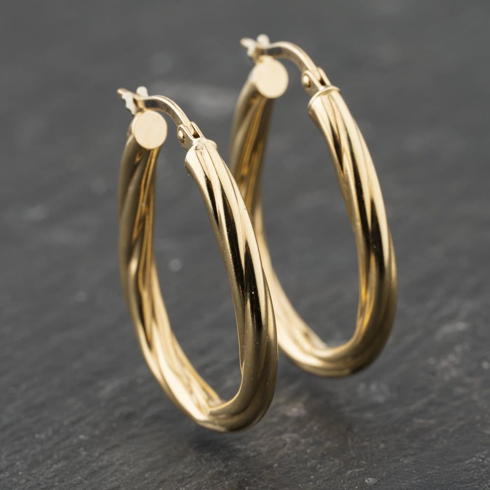 9ct Yellow Gold 28.8mm Twisted Hoop Earrings