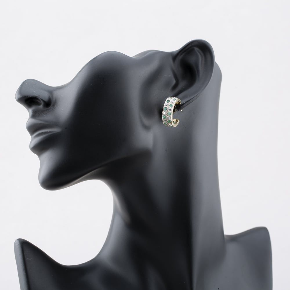 Second Hand 9ct Yellow Gold 2mm Emerald Half Hoop Earrings 41172730
