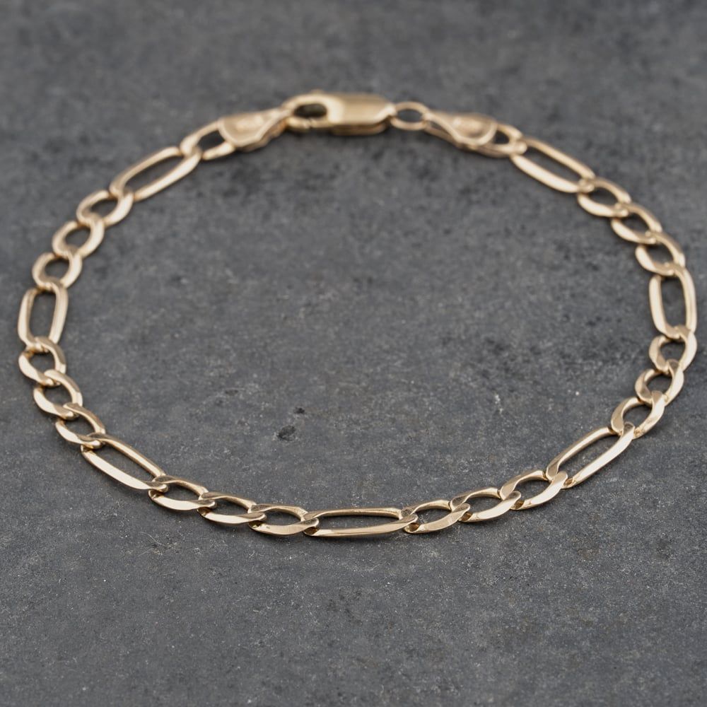 9ct Yellow Gold 3+1 7.5 Inch Figaro Chain Bracelet