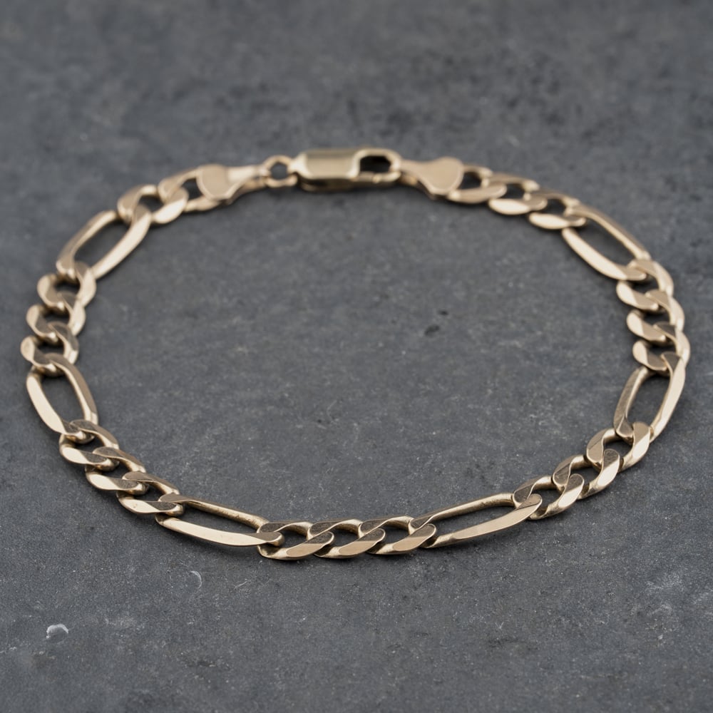 9ct Yellow Gold 3+1 8.5 Inch Figaro Chain Bracelet