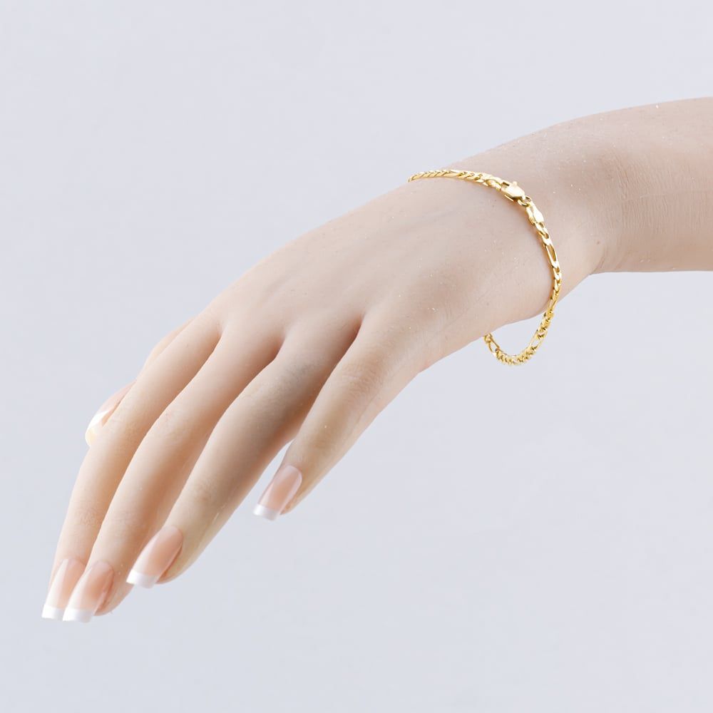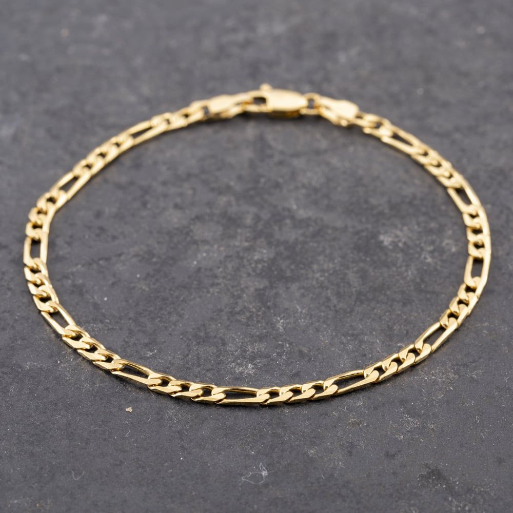 9ct Yellow Gold 3+1 Link 7.5 Inch Figaro Chain Bracelet