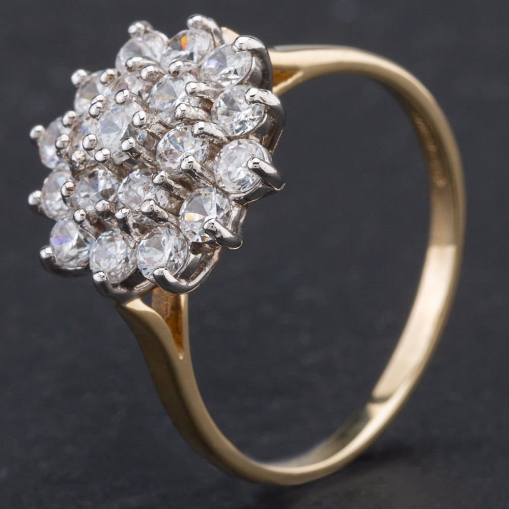 9ct Yellow Gold 3 Tier Traditional Style Cubic Zirconia Round Cluster Ring
