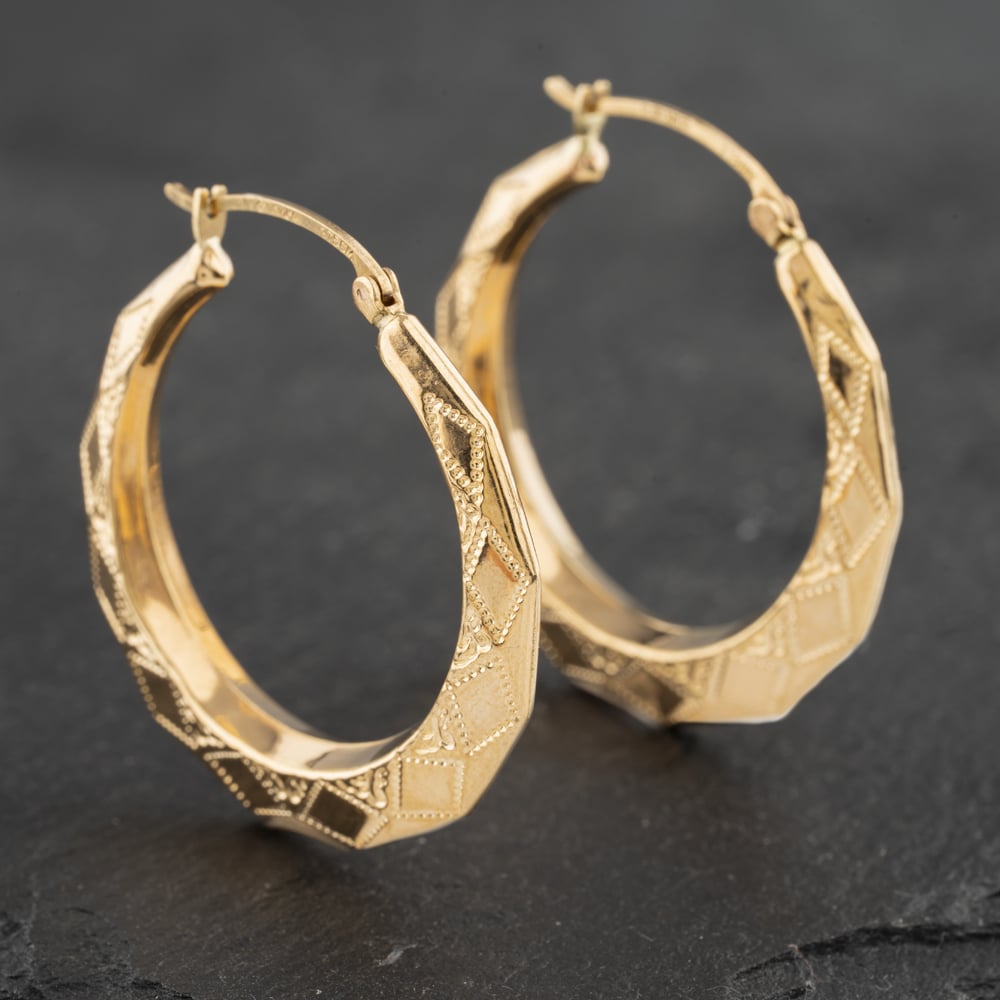 Second Hand 9ct Yellow Gold 33.5mm Patterned Hoop Earrings 41173100