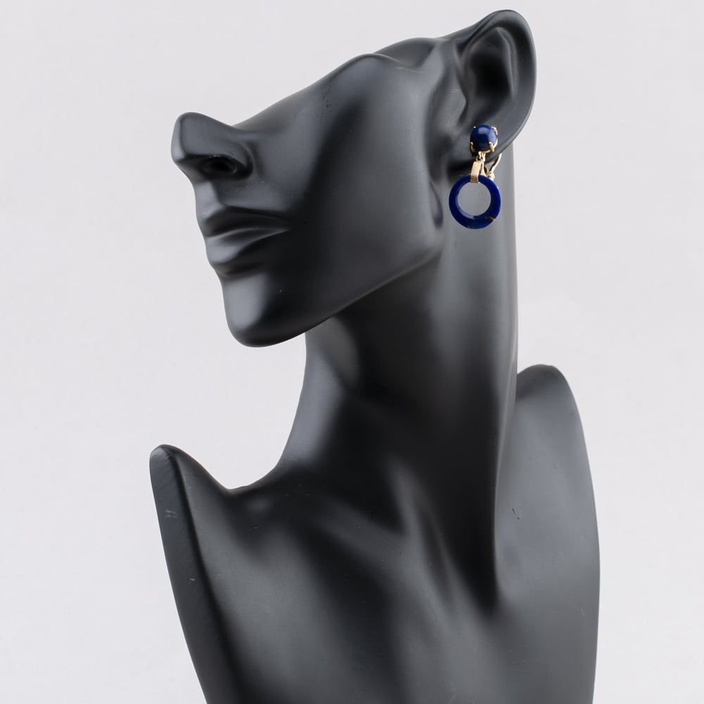 9ct Yellow Gold 34mm Lapis Lazuli Clip On Dropper Earrings