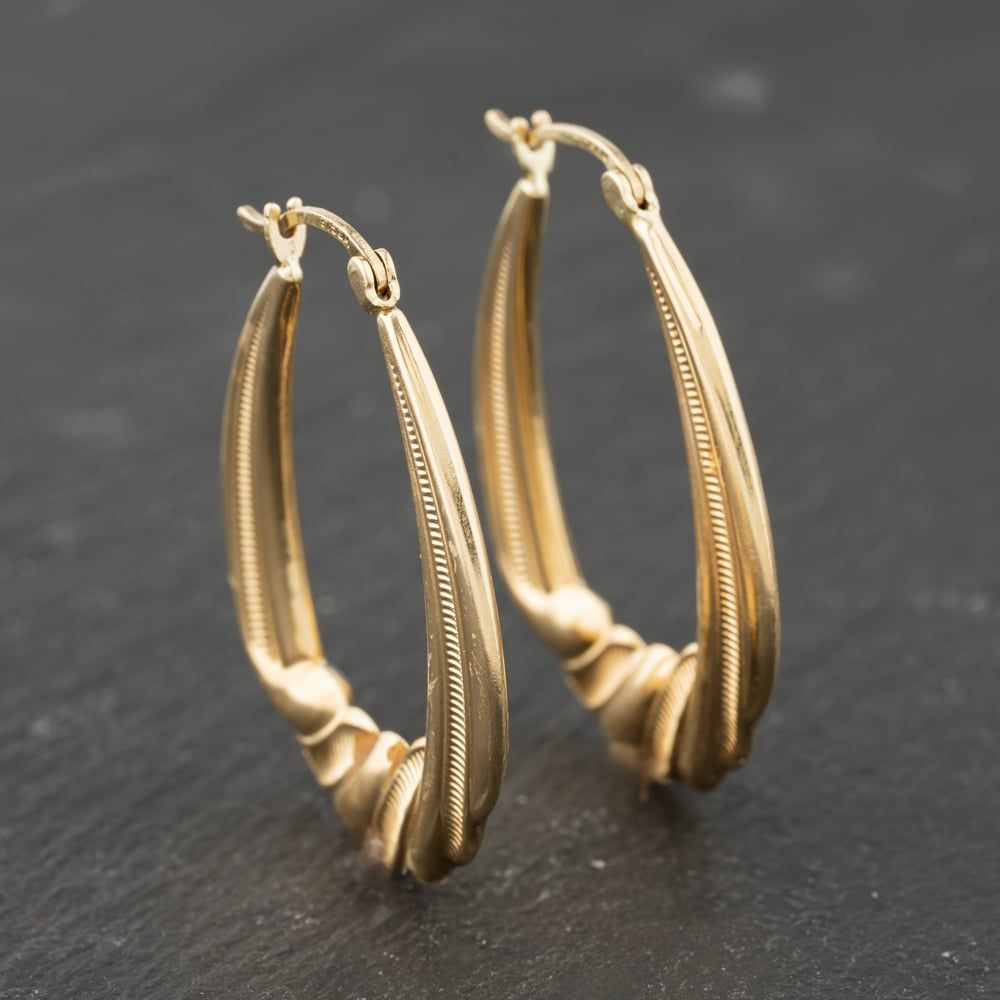 Second Hand 9ct Yellow Gold 34mm Patterned Creole Earrings 41173847