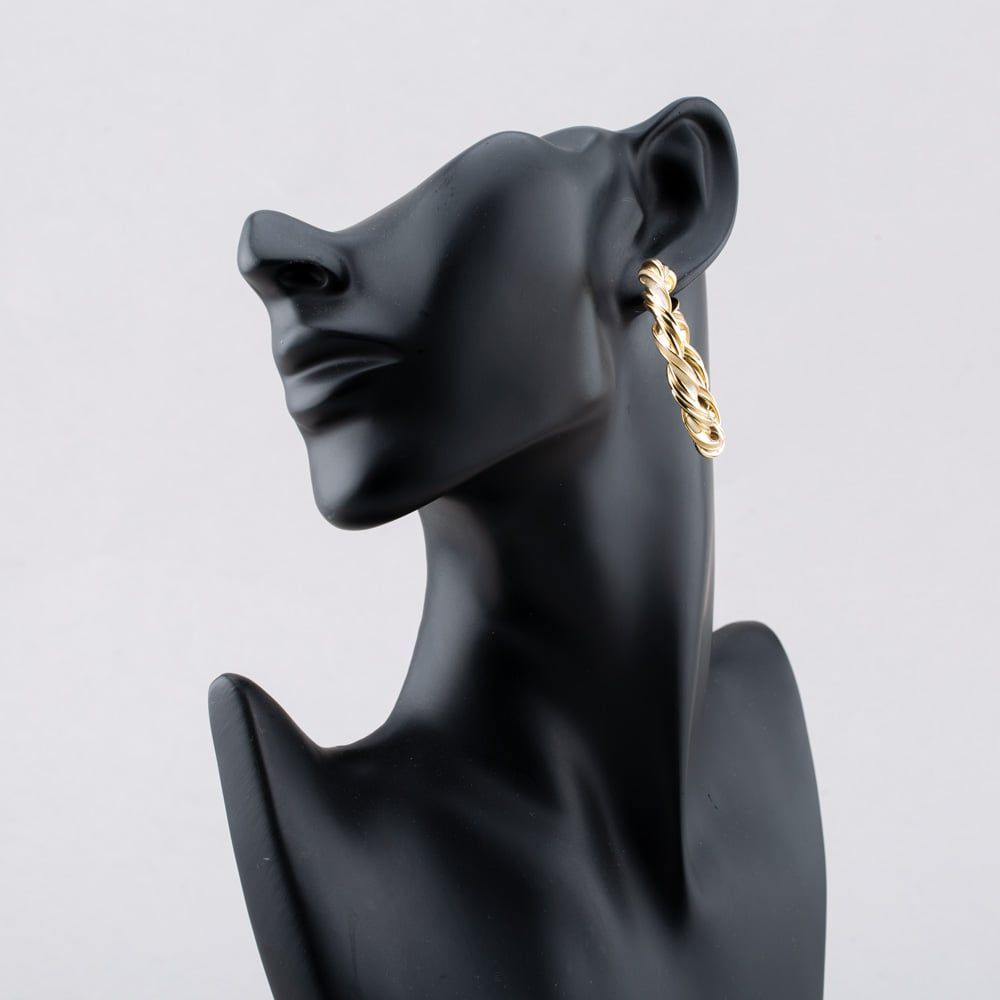 Second Hand 9ct Yellow Gold 47mm Twisted With Glitter Effect Hoop Earrings 41172735