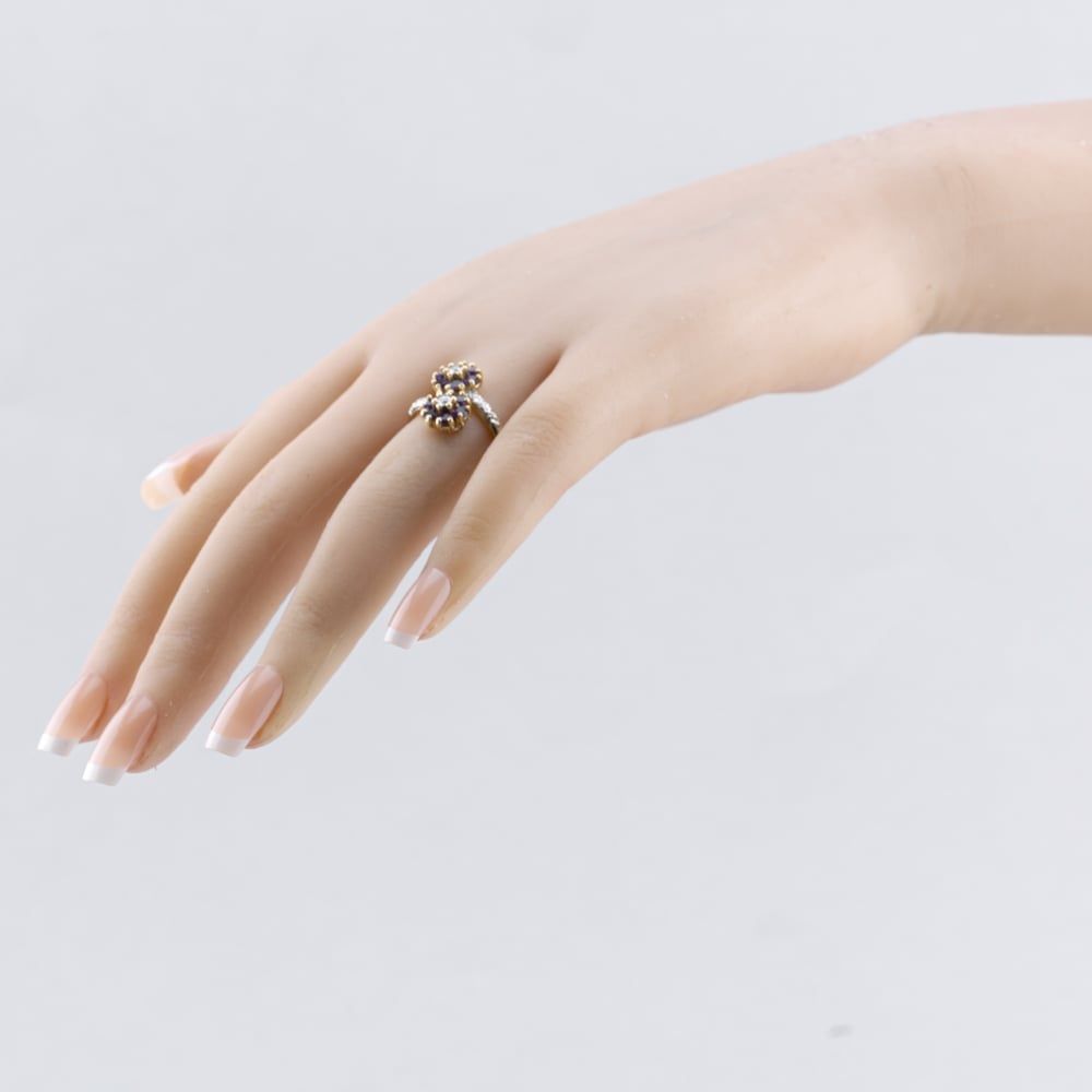 Second Hand 9ct Yellow Gold Amethyst & 0.01ct Diamond Double Cross Over Cluster Ring 41383291