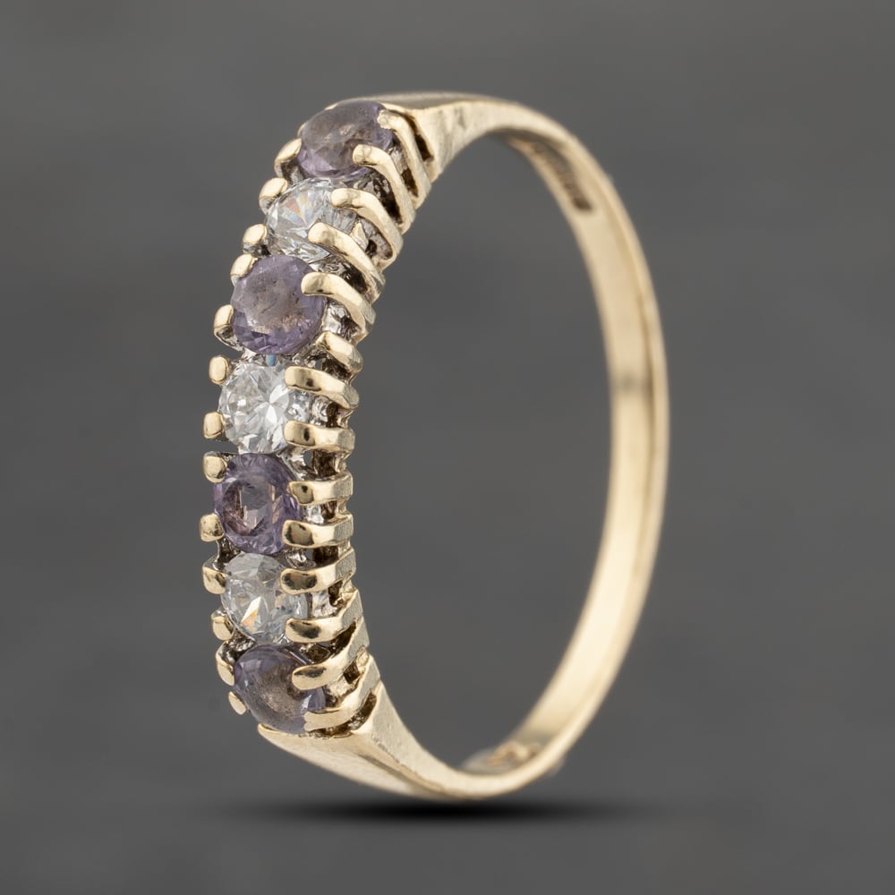 9ct Yellow Gold Amethyst & Cubic Zirconia Half Eternity Ring