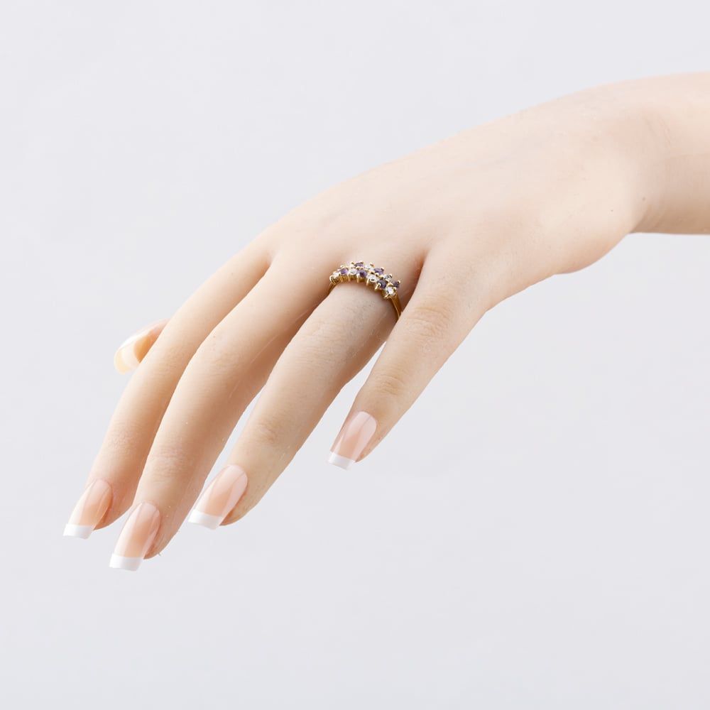 9ct Yellow Gold Amethyst & Cubic Zirconia Two Row Ring