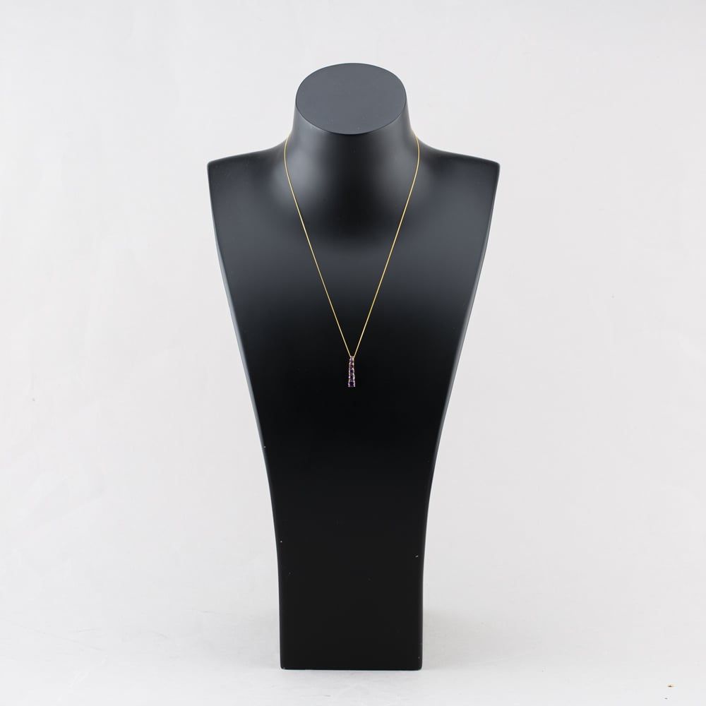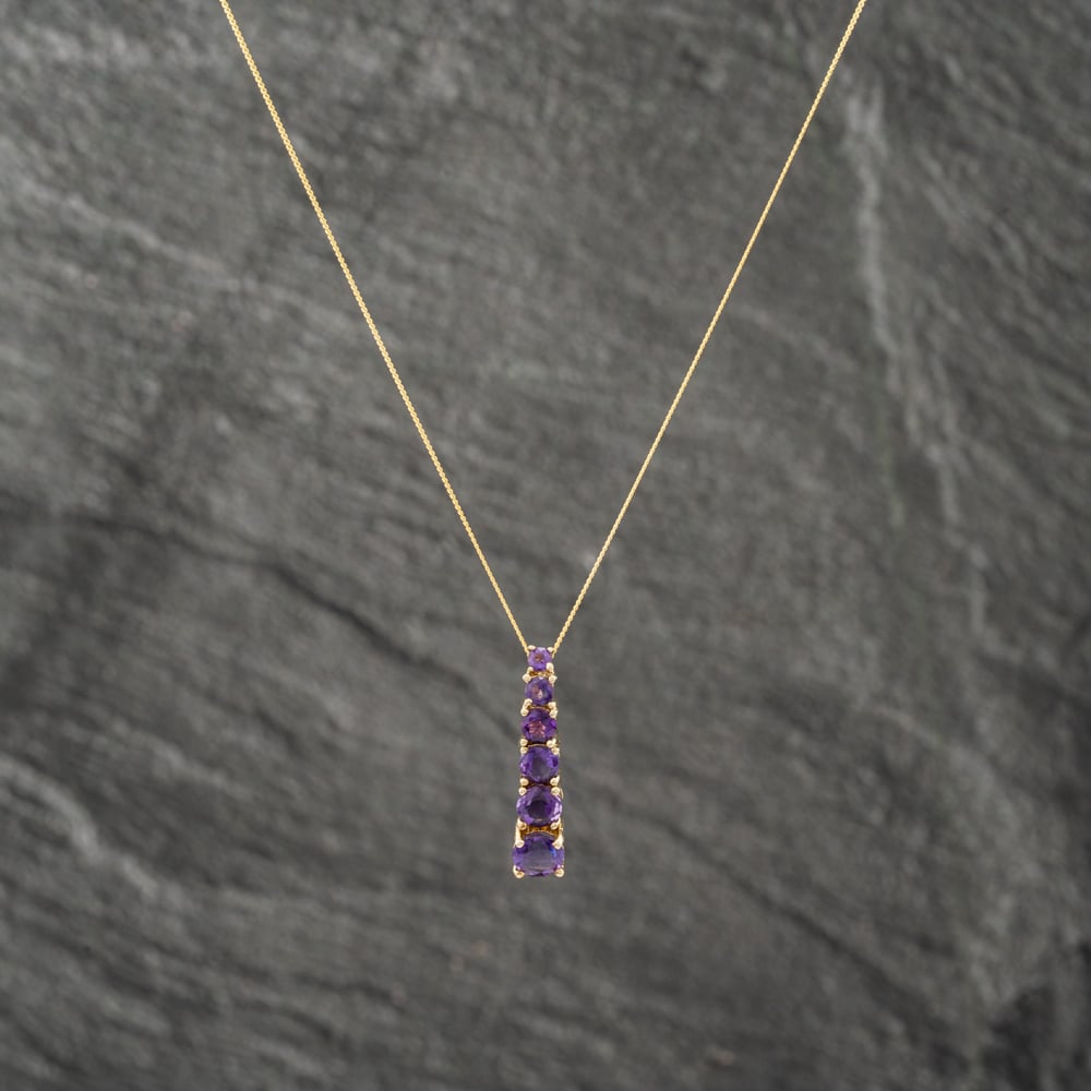 Second Hand 9ct Yellow Gold Amethyst Graduating Bar Link Gemstone Pendant & 18 Inch Curb Chain 41142970 Second Hand 9ct Yellow Gold Amethyst Graduating Bar Link Gemstone Pendant & 18 Inch Curb Chain 41142970