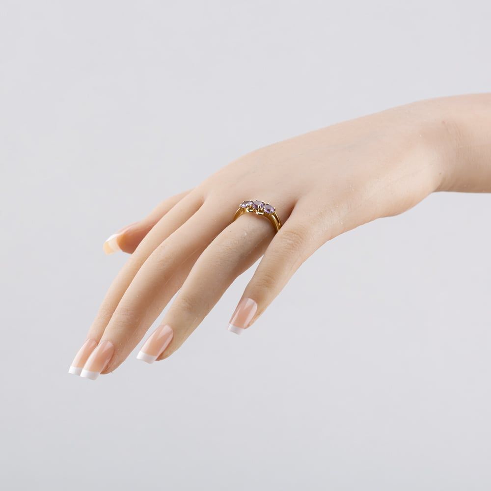 9ct Yellow Gold Amethyst Openwork Shoulders three Stone Ring