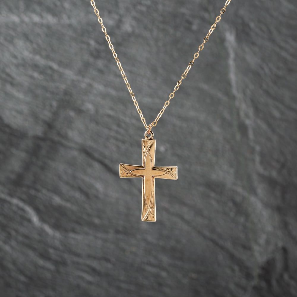 Second Hand 9ct Yellow Gold Art Nouveau Style Cross Pendant & 16 Inch Trace Chain 41142874 Second Hand 9ct Yellow Gold Art Nouveau Style Cross Pendant & 16 Inch Trace Chain 41142874