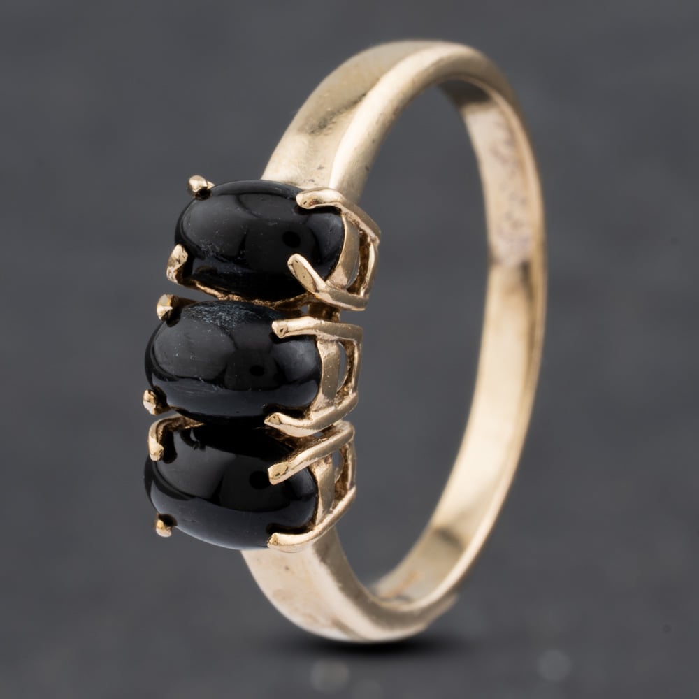 Second Hand 9ct Yellow Gold Black Star Diopside Three Stone Ring 41102669 Second Hand 9ct Yellow Gold Black Star Diopside Three Stone Ring 41102669