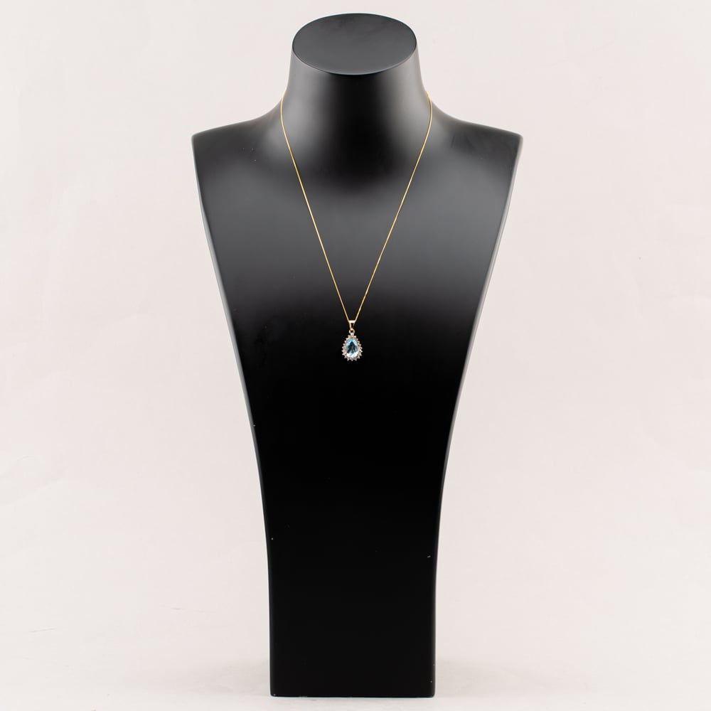 Second Hand 9ct Yellow Gold Blue Topaz & 0.01ct Diamond Pear Shape Pendant & 18 Inch Curb Chain 41142620 Second Hand 9ct Yellow Gold Blue Topaz & 0.01ct Diamond Pear Shape Pendant & 18 Inch Curb Chain 41142620