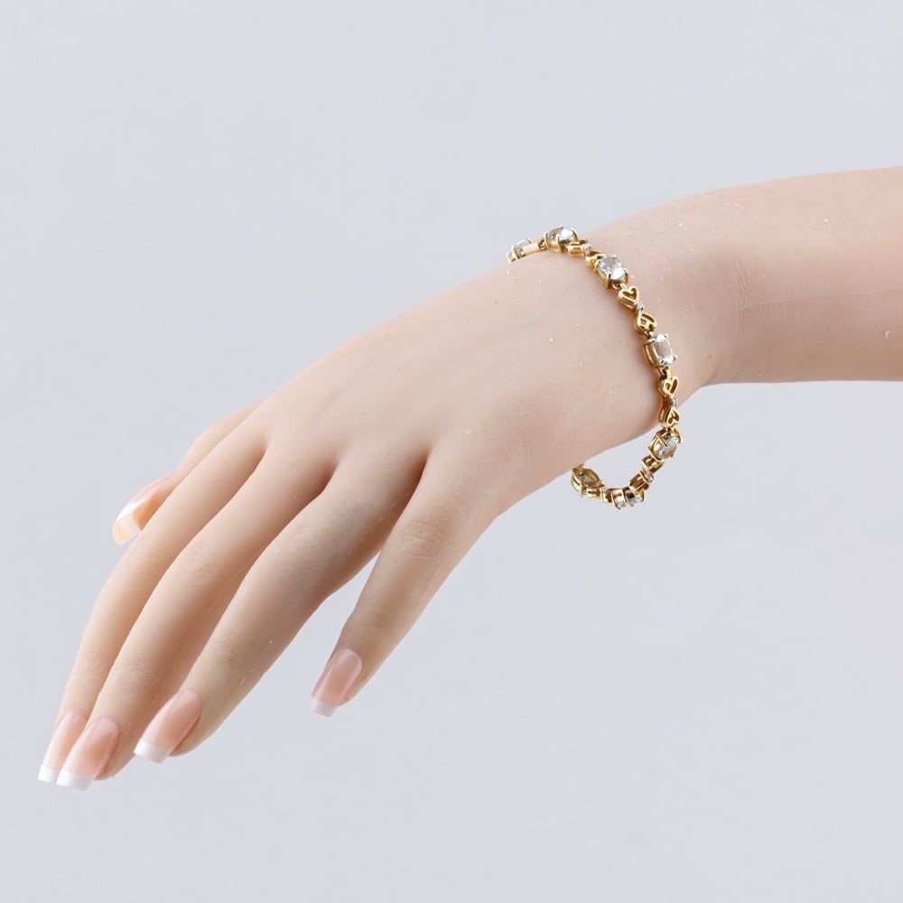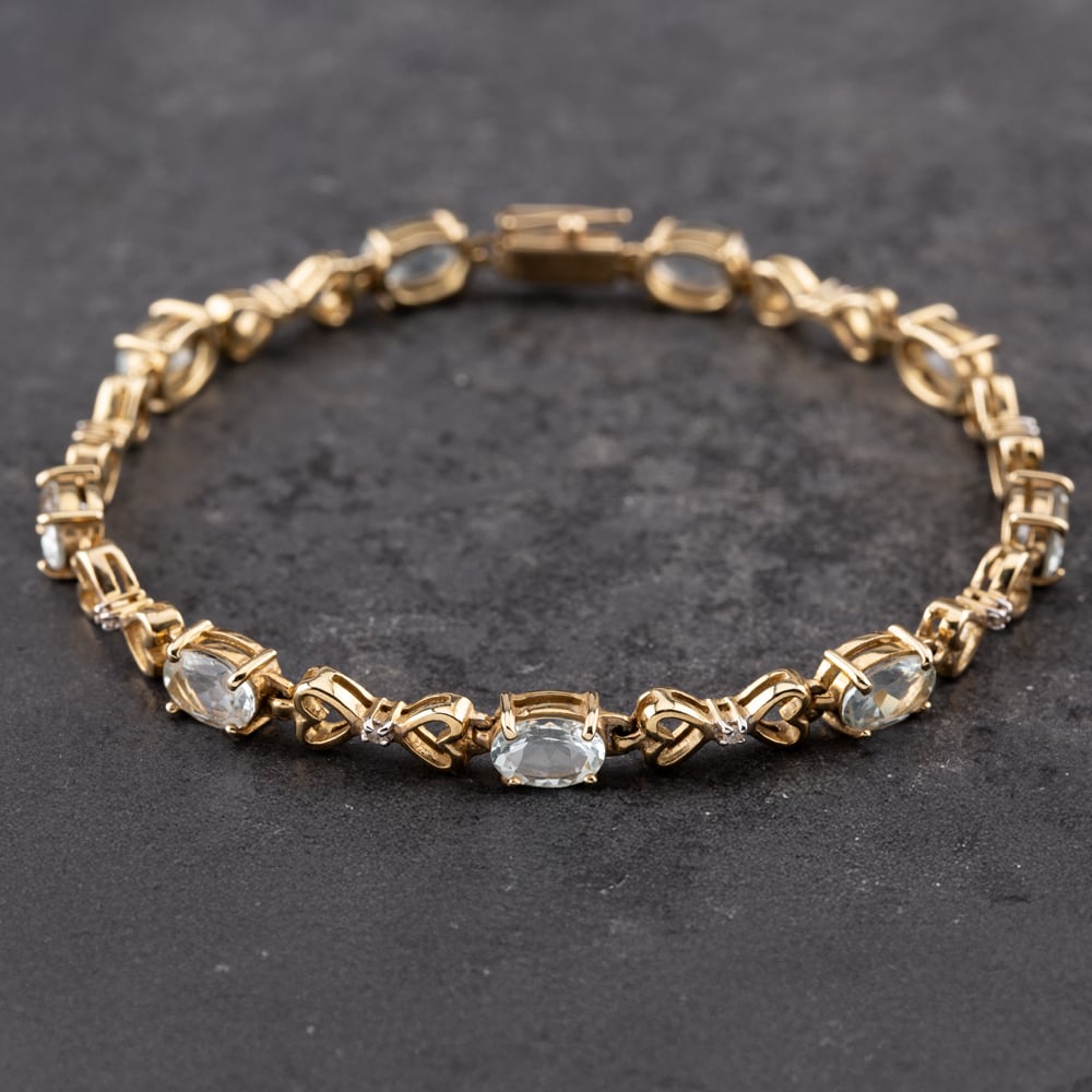 9ct Yellow Gold Blue Topaz & 0.08ct Brilliant Cut Diamond Hearts 7.5 Inch Bracelet