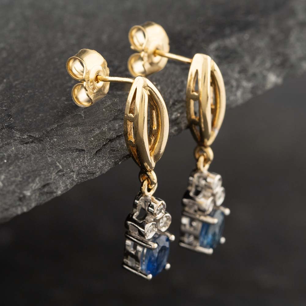 Second Hand 9ct Yellow Gold Blue Topaz & Diamond Dropper Earrings 41171730 Second Hand 9ct Yellow Gold Blue Topaz & Diamond Dropper Earrings 41171730
