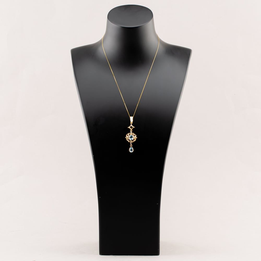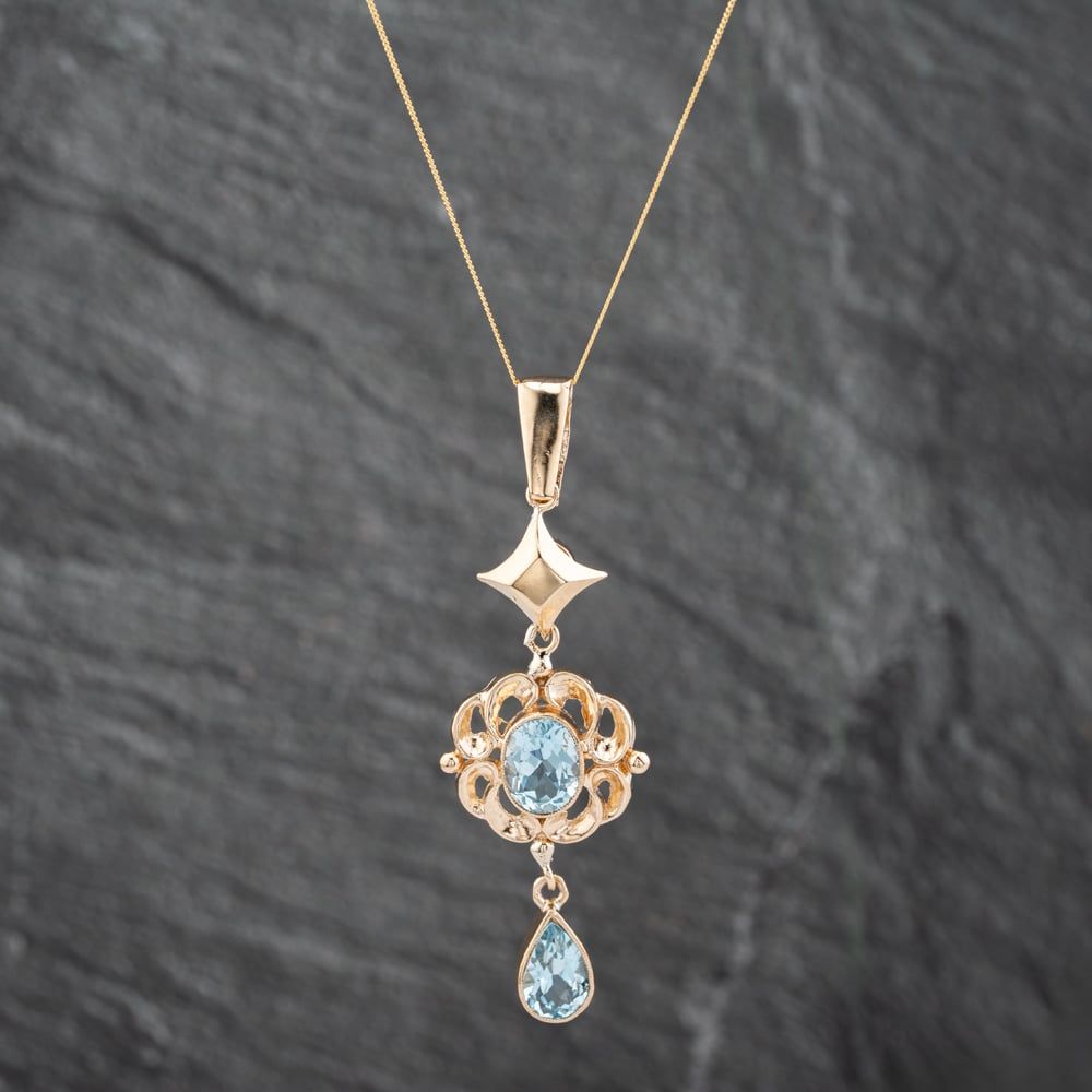 Second Hand 9ct Yellow Gold Blue Topaz Dropper Pendant & 18 Inch Curb Chain 41142624 Second Hand 9ct Yellow Gold Blue Topaz Dropper Pendant & 18 Inch Curb Chain 41142624