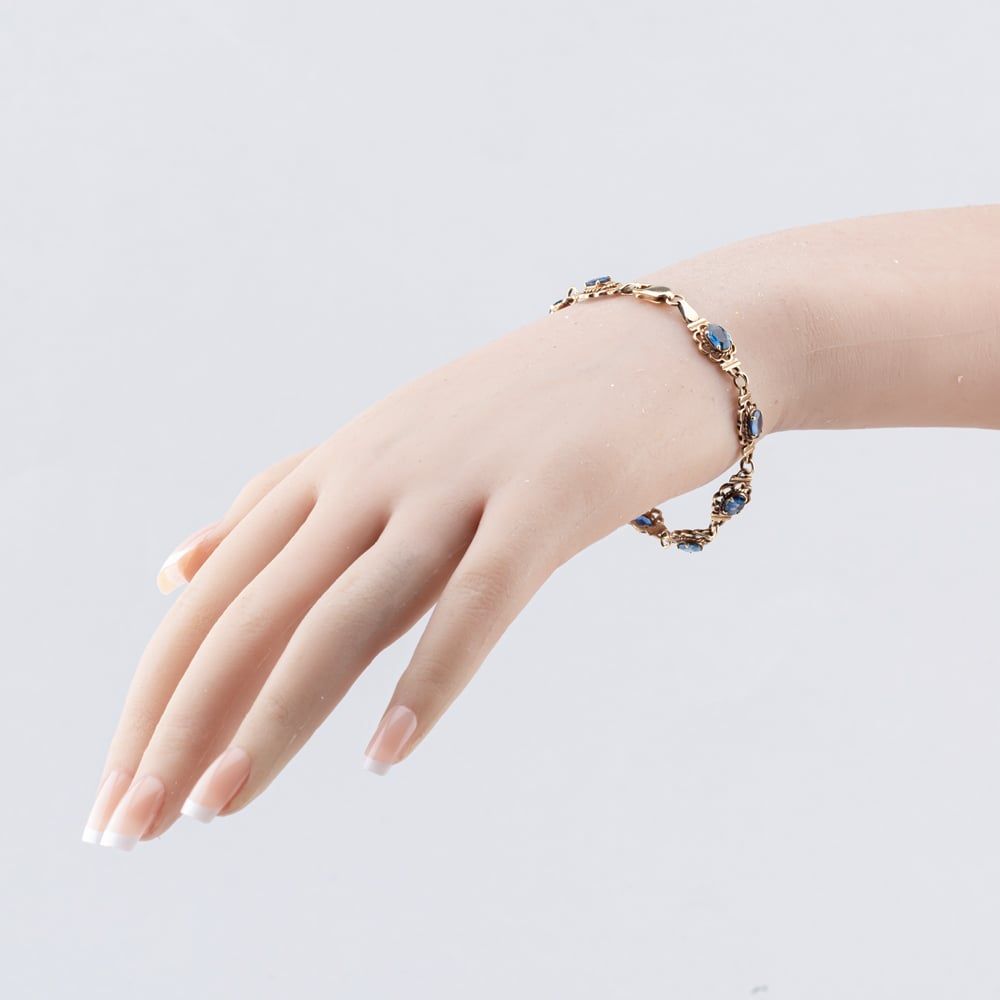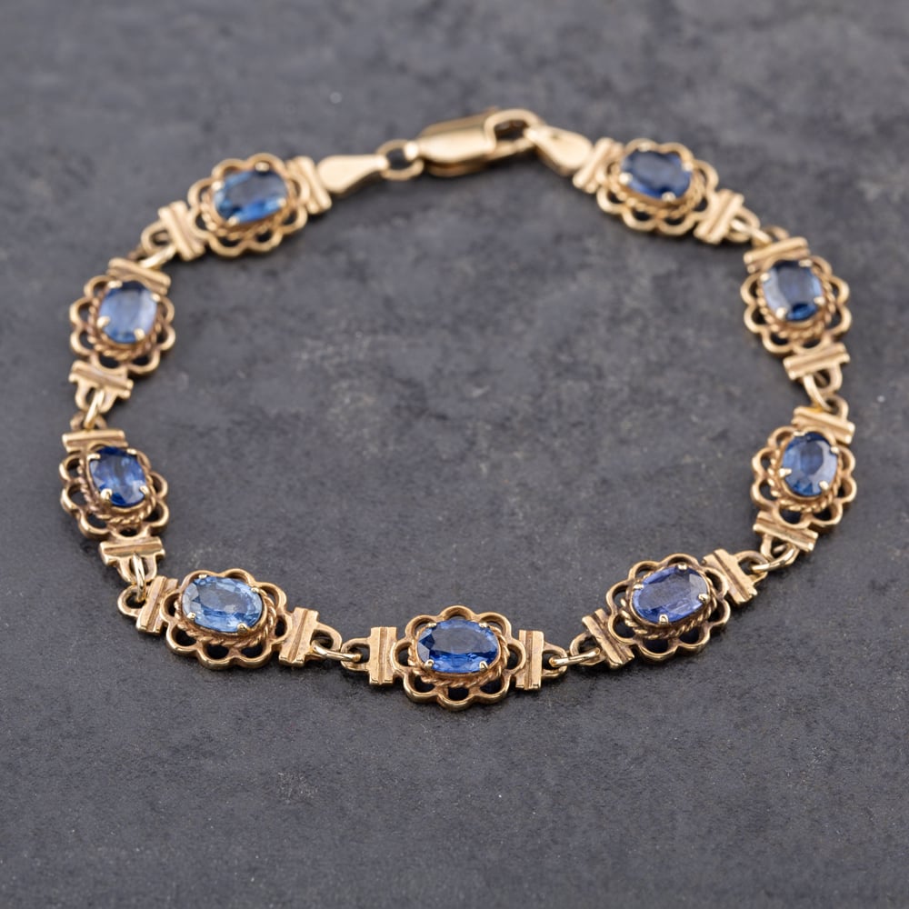 9ct Yellow Gold Blue Topaz Filigree 7.5 Inch Bracelet