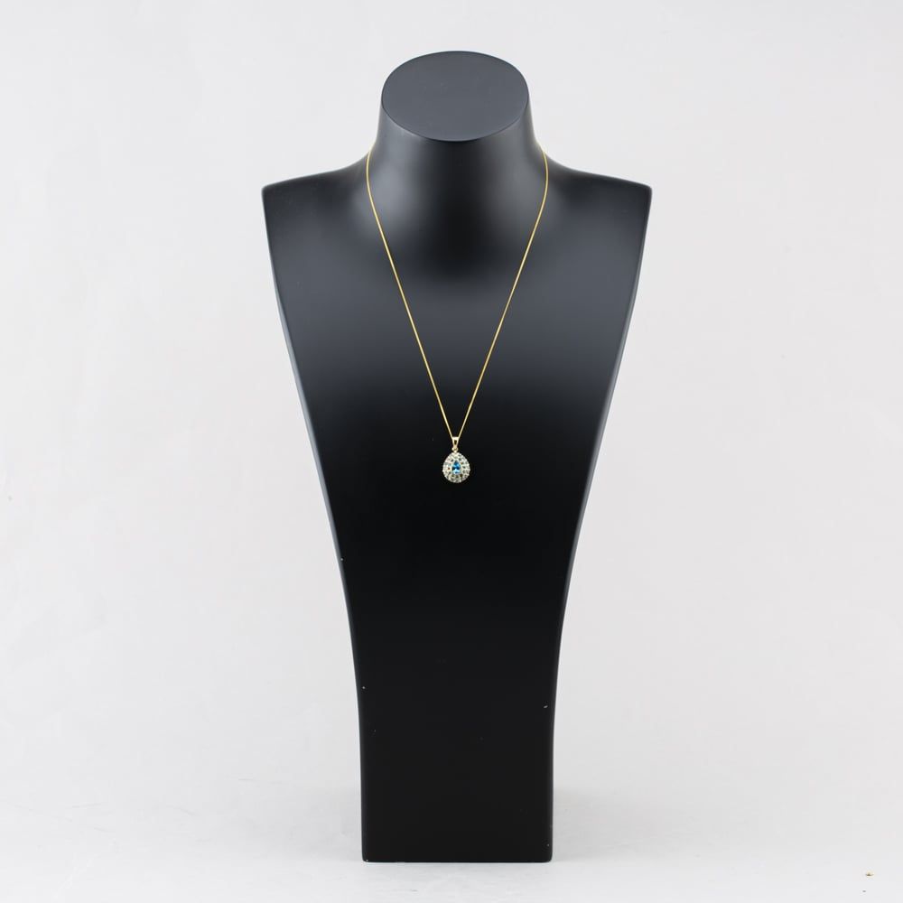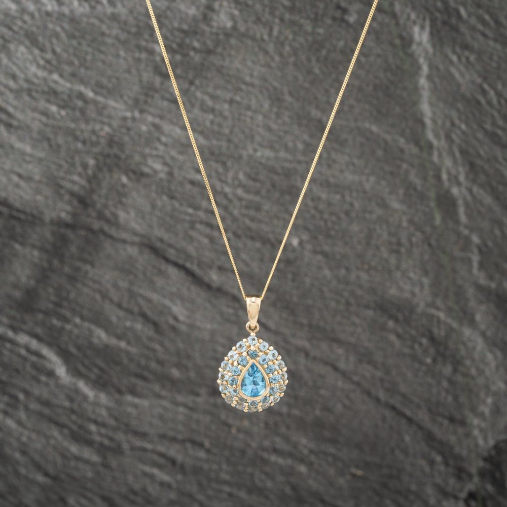 Second Hand 9ct Yellow Gold Blue Topaz Pearshaped Pendant & 18 Inch Curb Chain 41142991 Second Hand 9ct Yellow Gold Blue Topaz Pearshaped Pendant & 18 Inch Curb Chain 41142991