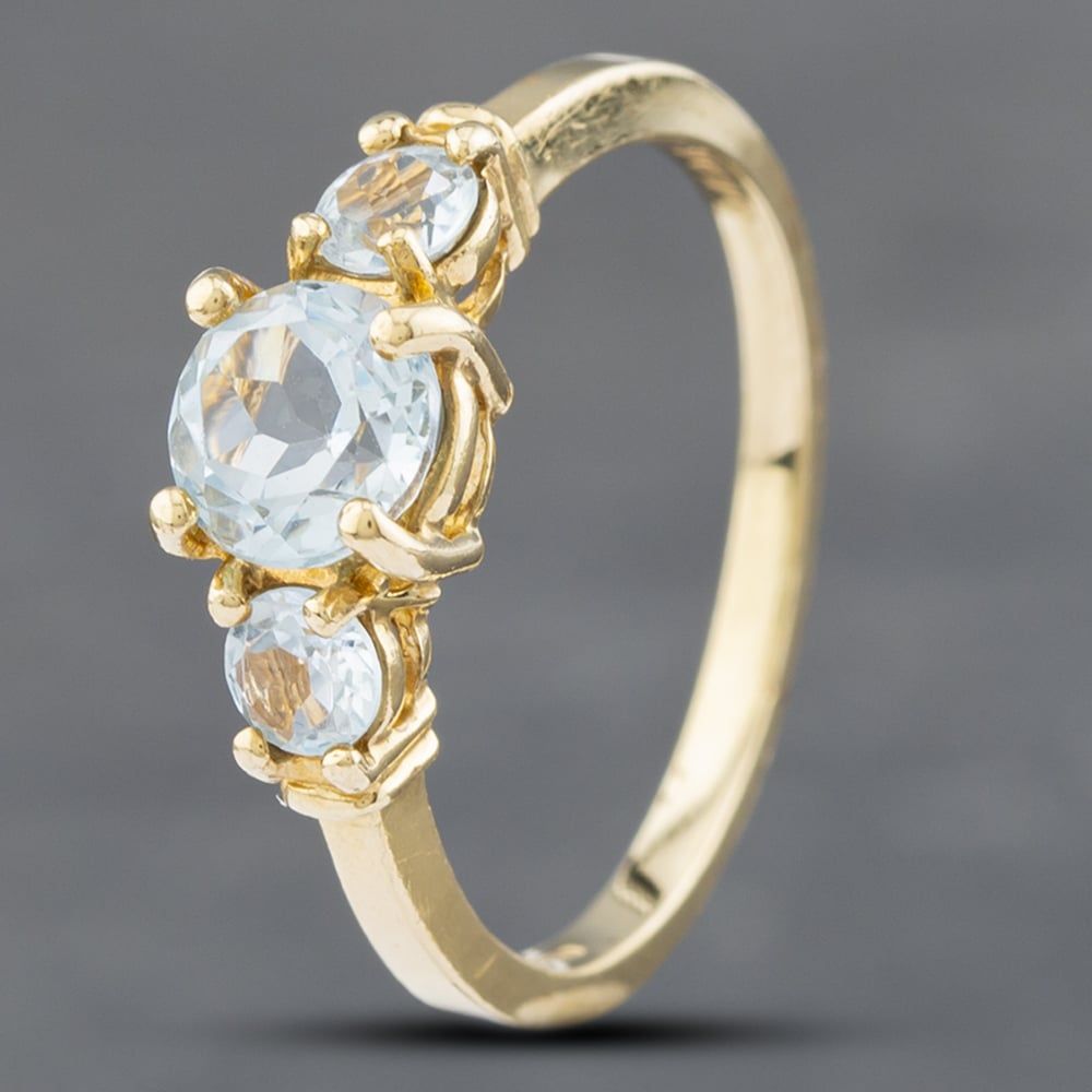 9ct Yellow Gold Blue Topaz three Stone Ring
