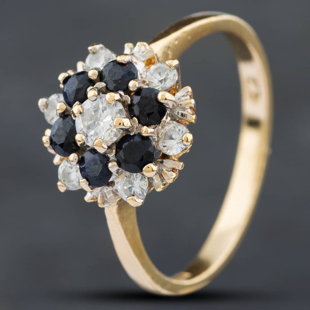 9ct Yellow Gold Brilliant Cut Sapphire & Cubic Zirconia Cluster Ring