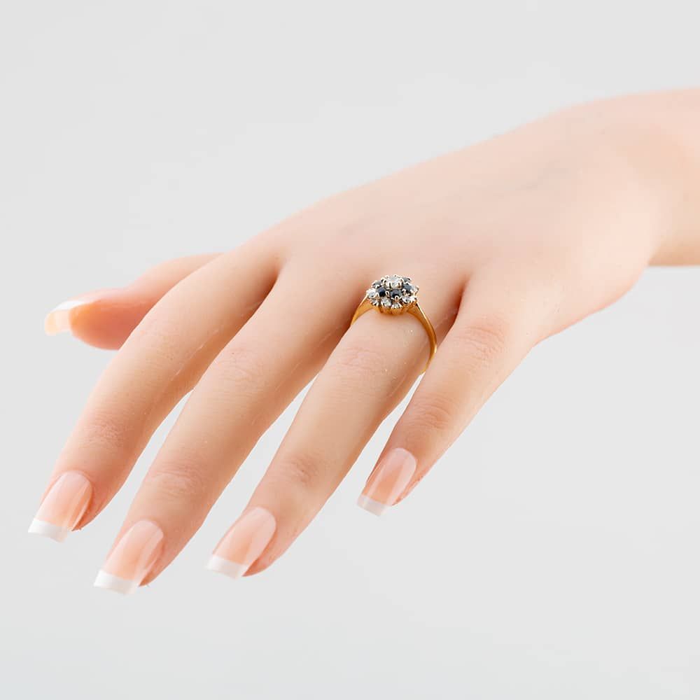 Second Hand 9ct Yellow Gold Brilliant Cut Sapphire & Cubic Zirconia Cluster Ring 41101848 Second Hand 9ct Yellow Gold Brilliant Cut Sapphire & Cubic Zirconia Cluster Ring 41101848