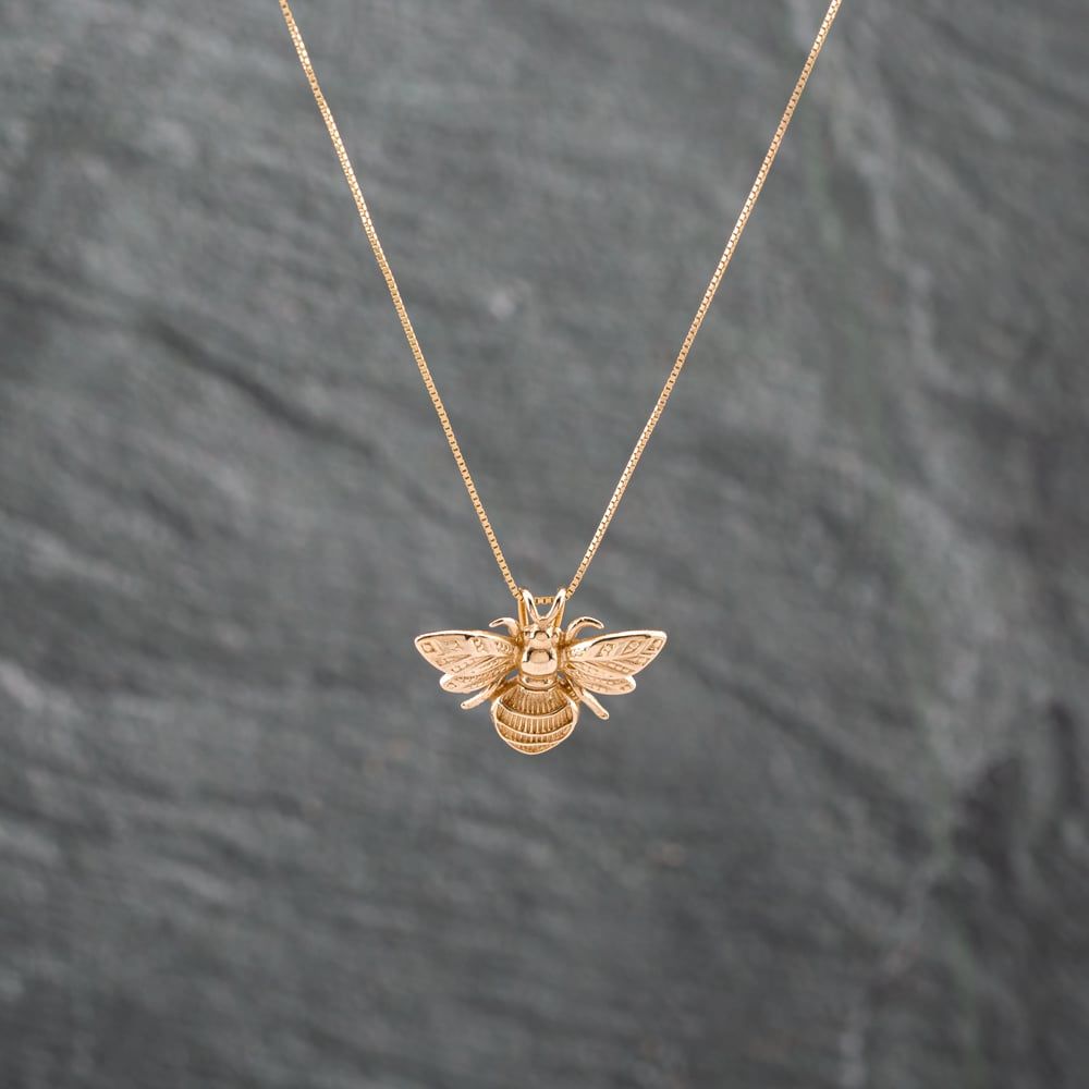 9ct Yellow Gold Bumble Bee Pendant & 18 Inch Box Chain