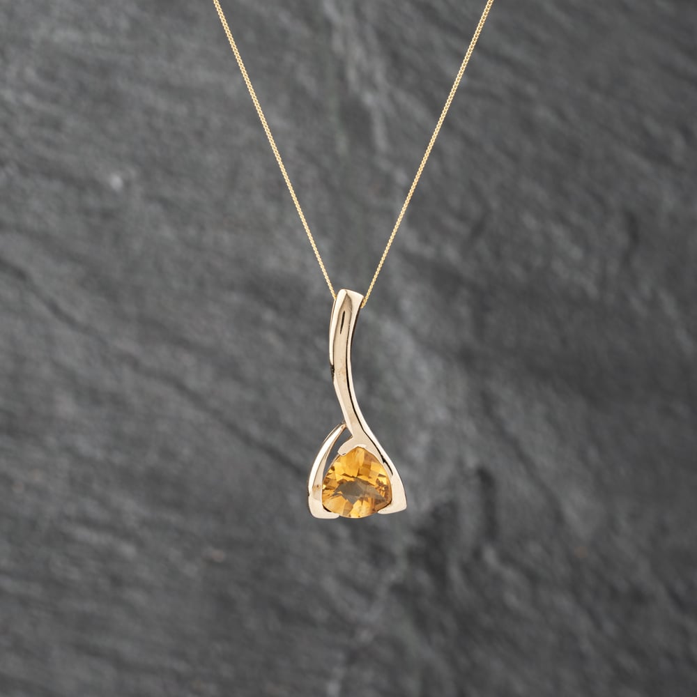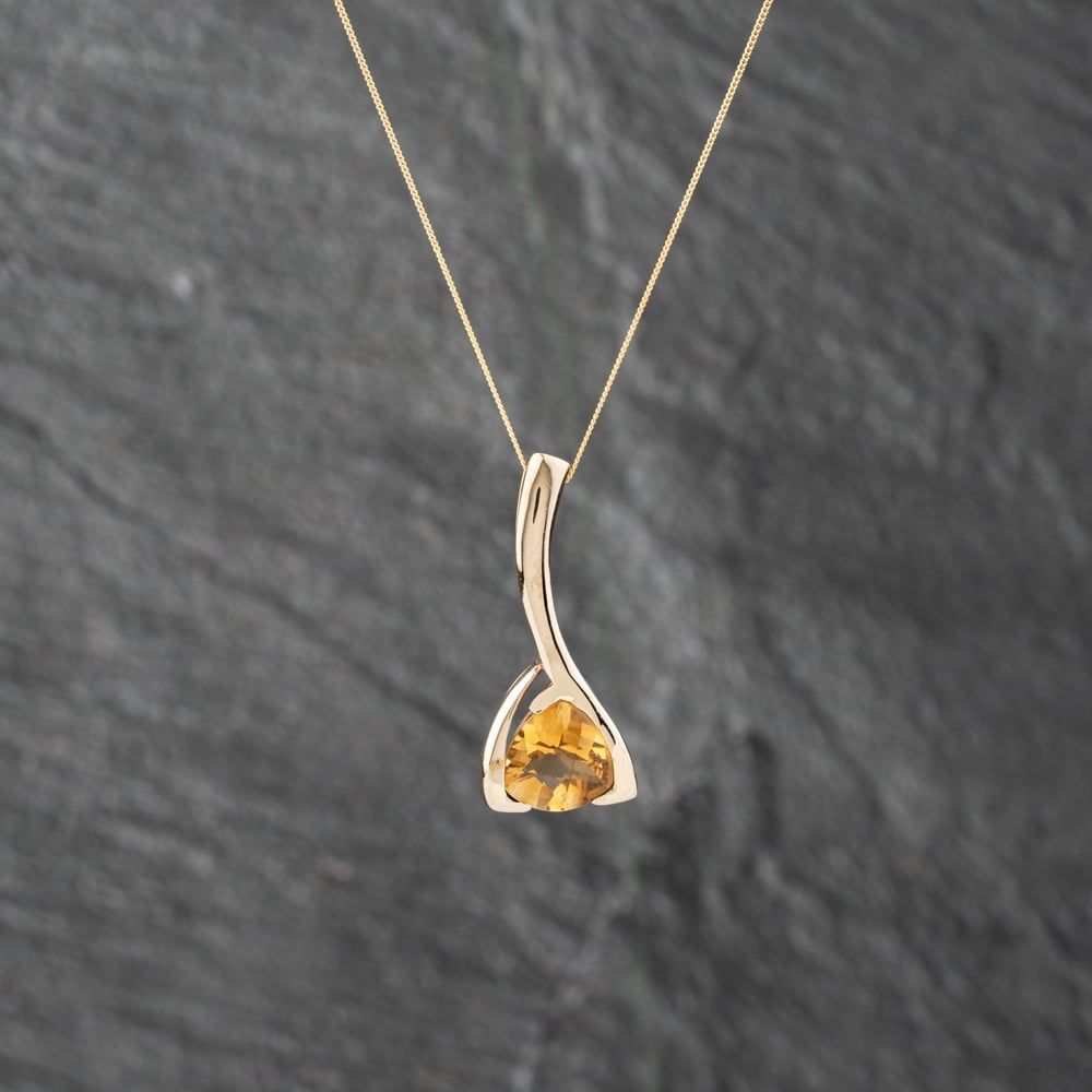Second Hand 9ct Yellow Gold Citrine Triangular Bar Pendant & 18 Inch Curb Chain 41142868 Second Hand 9ct Yellow Gold Citrine Triangular Bar Pendant & 18 Inch Curb Chain 41142868