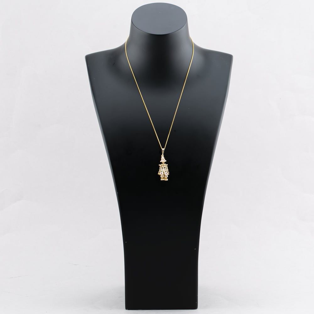 9ct Yellow Gold Clown Pendant & 18 Inch Curb Chain