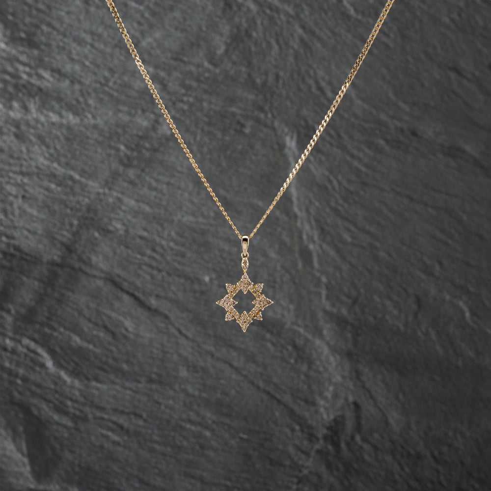 Second Hand 9ct Yellow Gold Cognac Diamond Snowflake Pendant & 18 Inch Curb Chain 41142802 Second Hand 9ct Yellow Gold Cognac Diamond Snowflake Pendant & 18 Inch Curb Chain 41142802