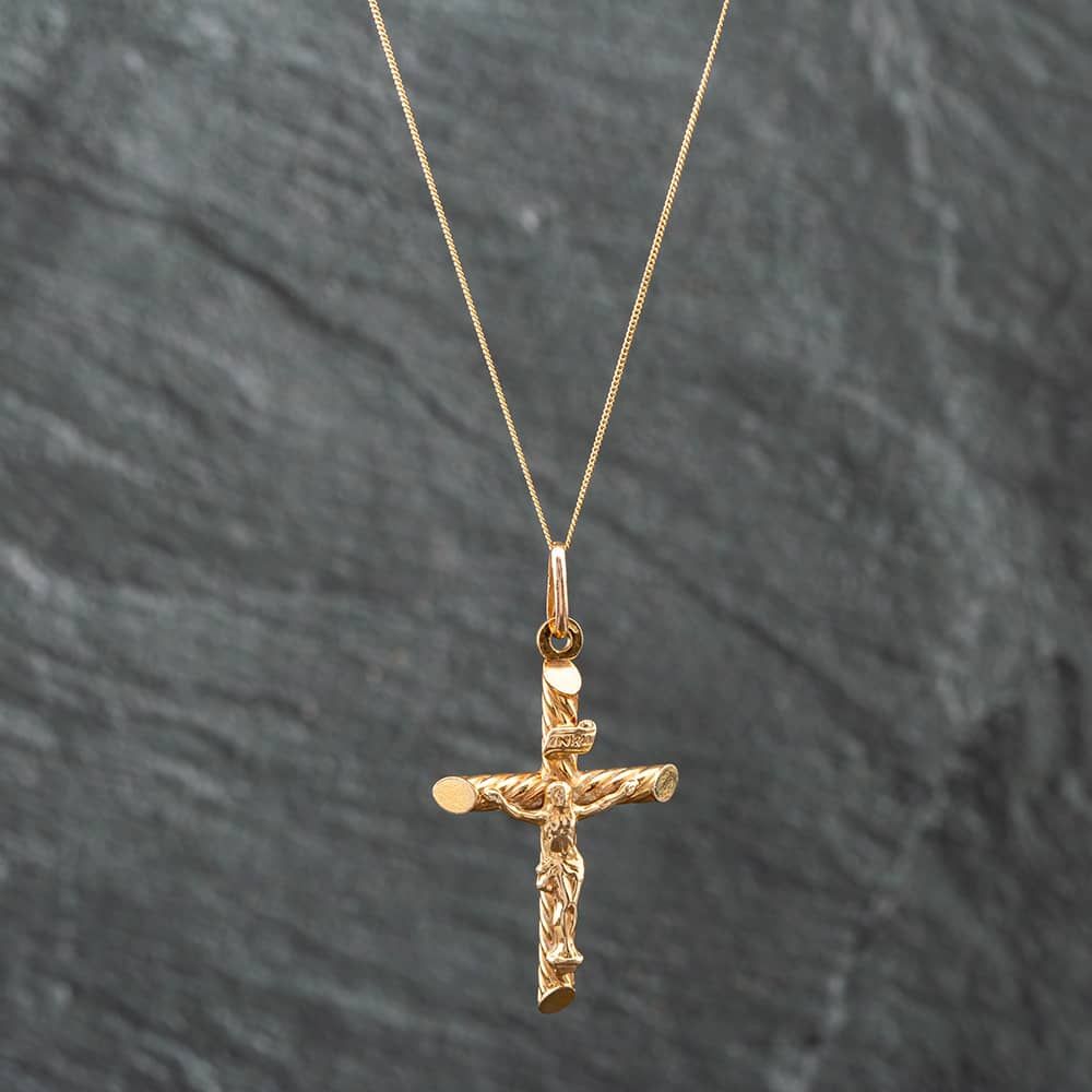 9ct Yellow Gold Crucifix Cross Pendant & 18 Inch Curb Chain