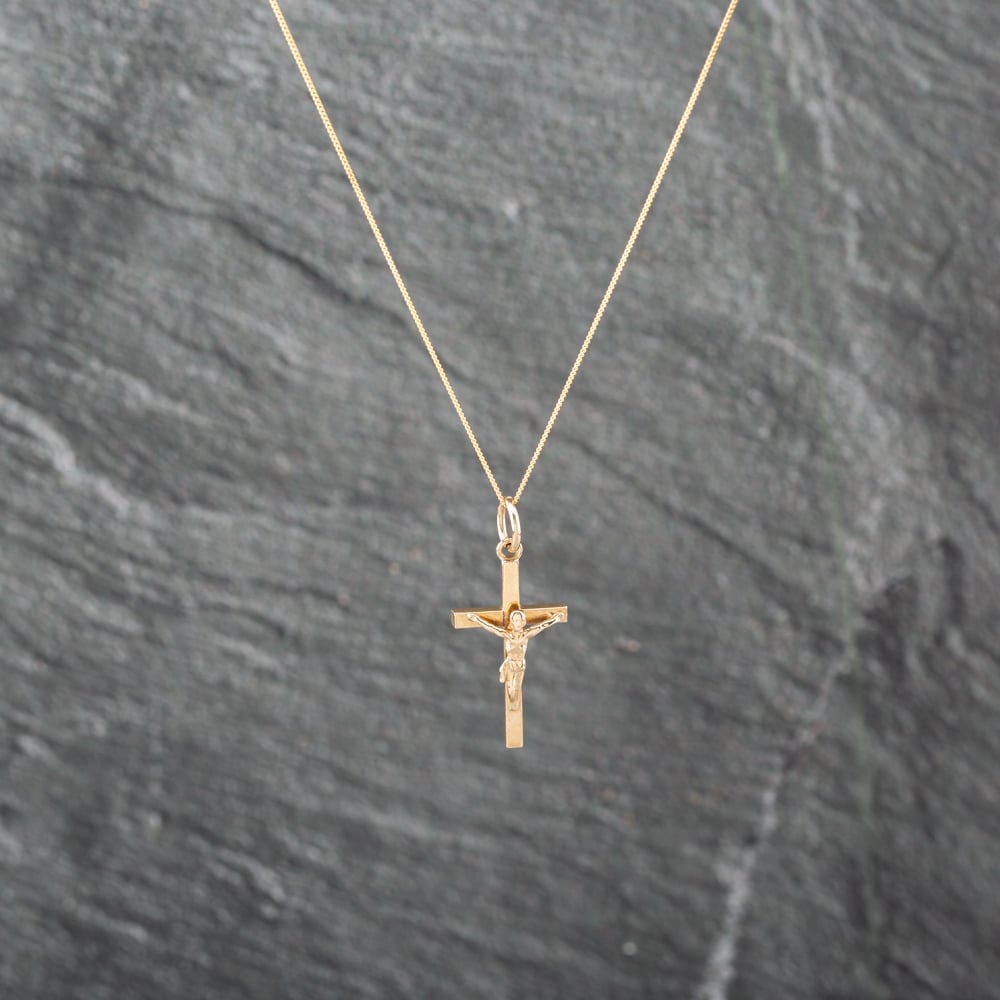 Second Hand 9ct Yellow Gold Crucifix Cross Pendant & 18 Inch Curb Chain 41143034 Second Hand 9ct Yellow Gold Crucifix Cross Pendant & 18 Inch Curb Chain 41143034