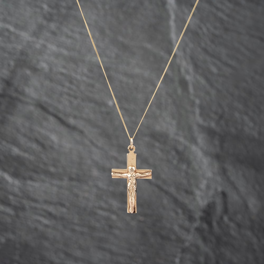 Second Hand 9ct Yellow Gold Crucifix Cross Pendant & 18 Inch Curb Chain 43141264 Second Hand 9ct Yellow Gold Crucifix Cross Pendant & 18 Inch Curb Chain 43141264