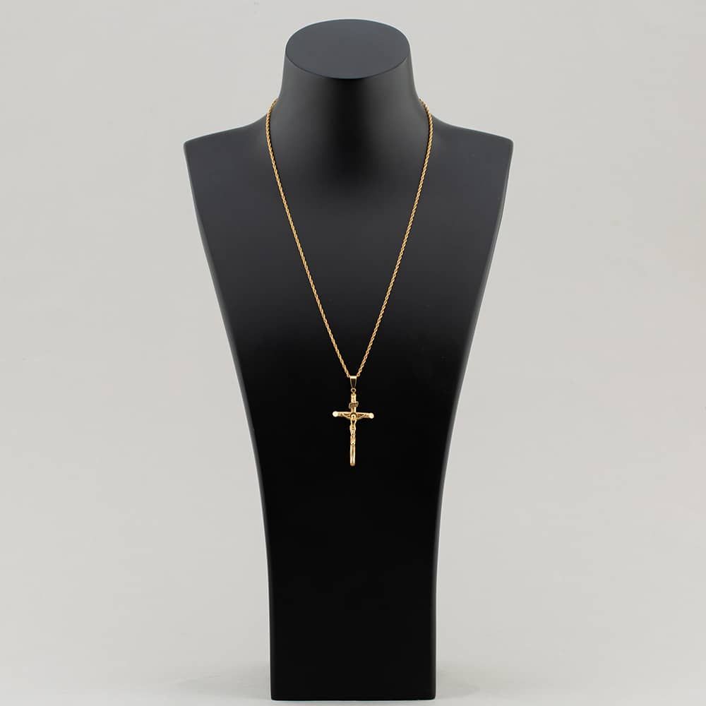 9ct Yellow Gold Crucifix Cross Pendant & 20 Inch Prince Of Wales Chain