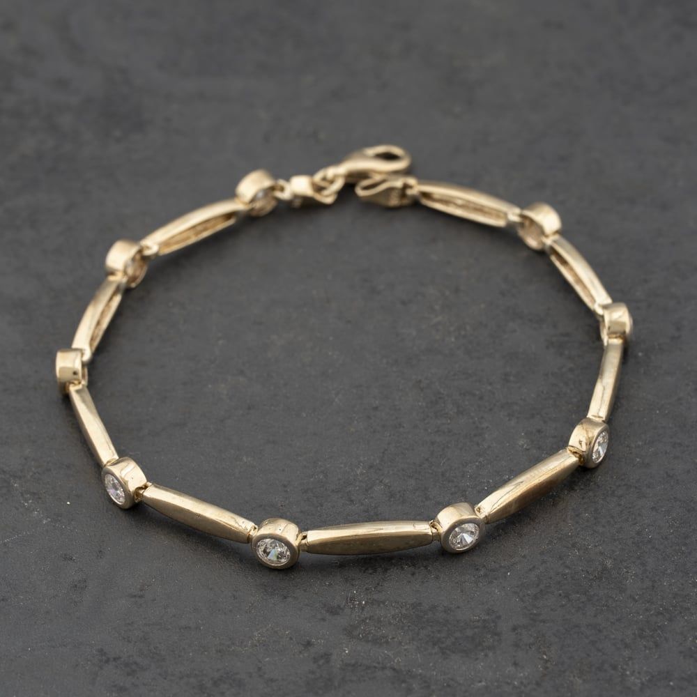 9ct Yellow Gold Cubic Zirconia 7.5 Inch Bar Bracelet