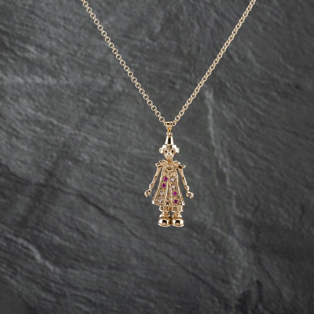 9ct Yellow Gold Cubic Zirconia Clown Gemstone Pendant & 20 Inch Belcher Chain
