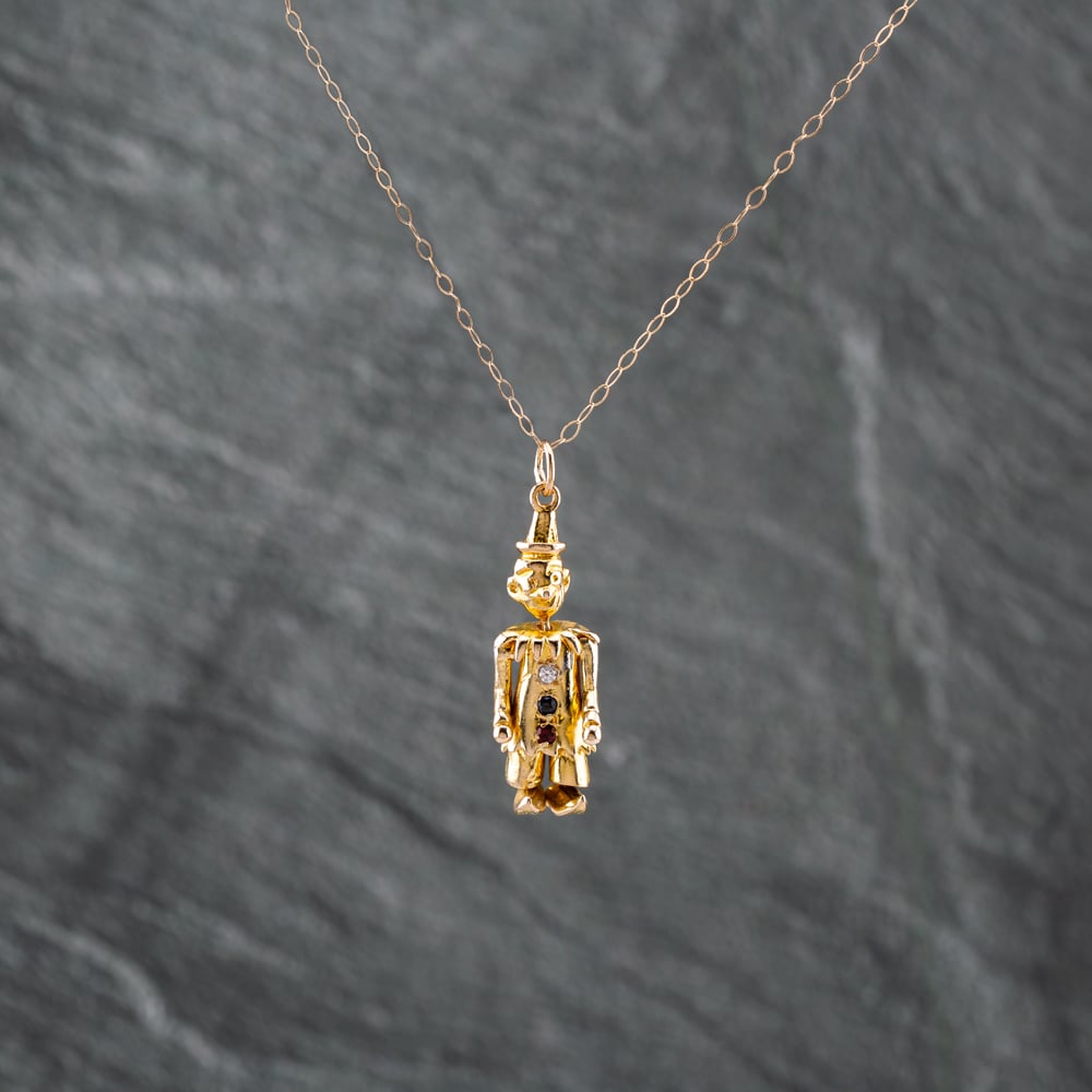 9ct Yellow Gold Cubic Zirconia Clown Pendant & 17 Inch Trace Chain